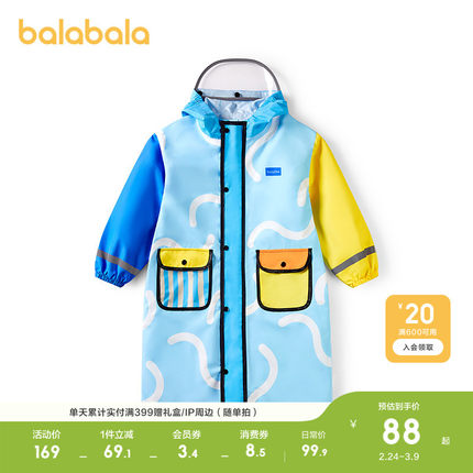 巴拉巴拉儿童雨衣男童女童2026撞色防水雨披防雨服上学时尚百搭酷