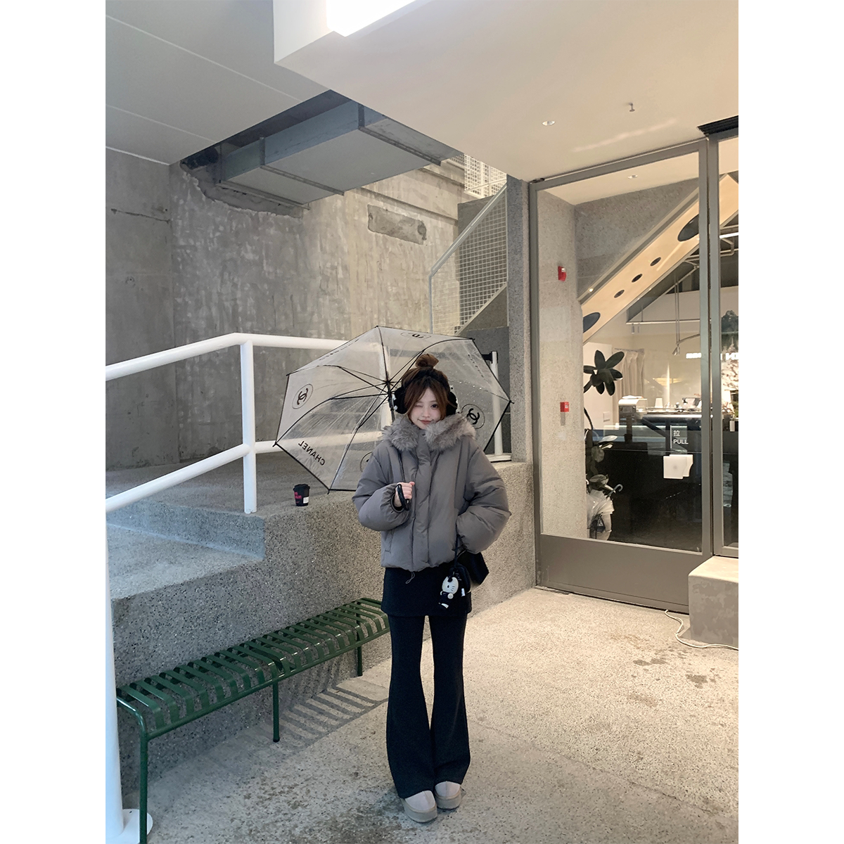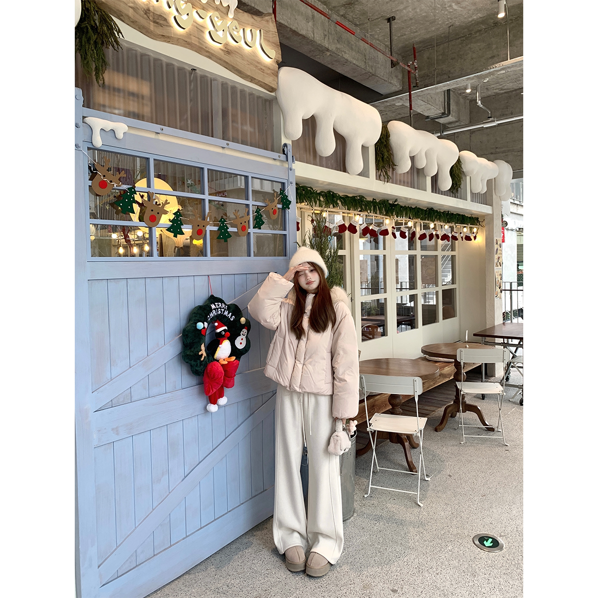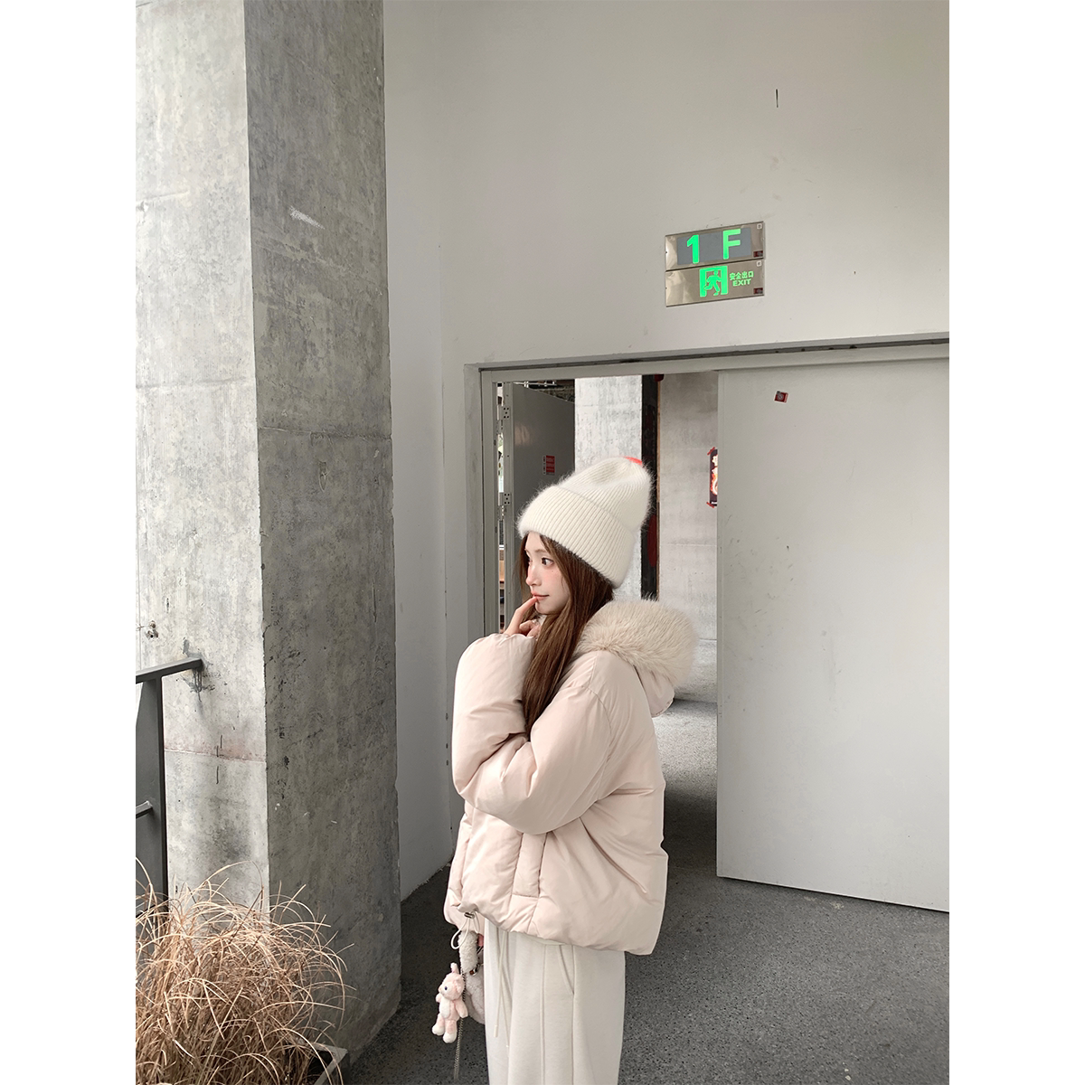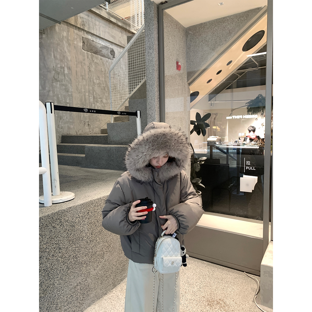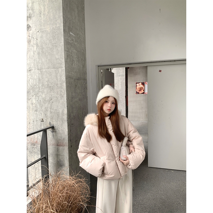 Zzhen 2026年新款 埃圭巴黎 温暖大毛领连帽保暖面包羽绒服女短款