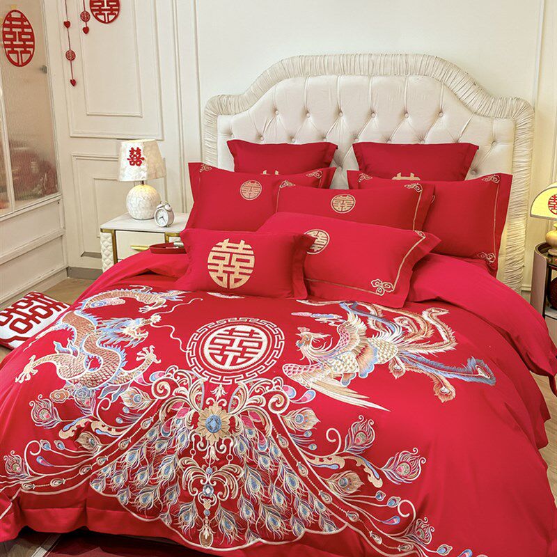 高级感新款龙凤刺绣婚庆四件套C红色新婚被套床单结婚喜被床品