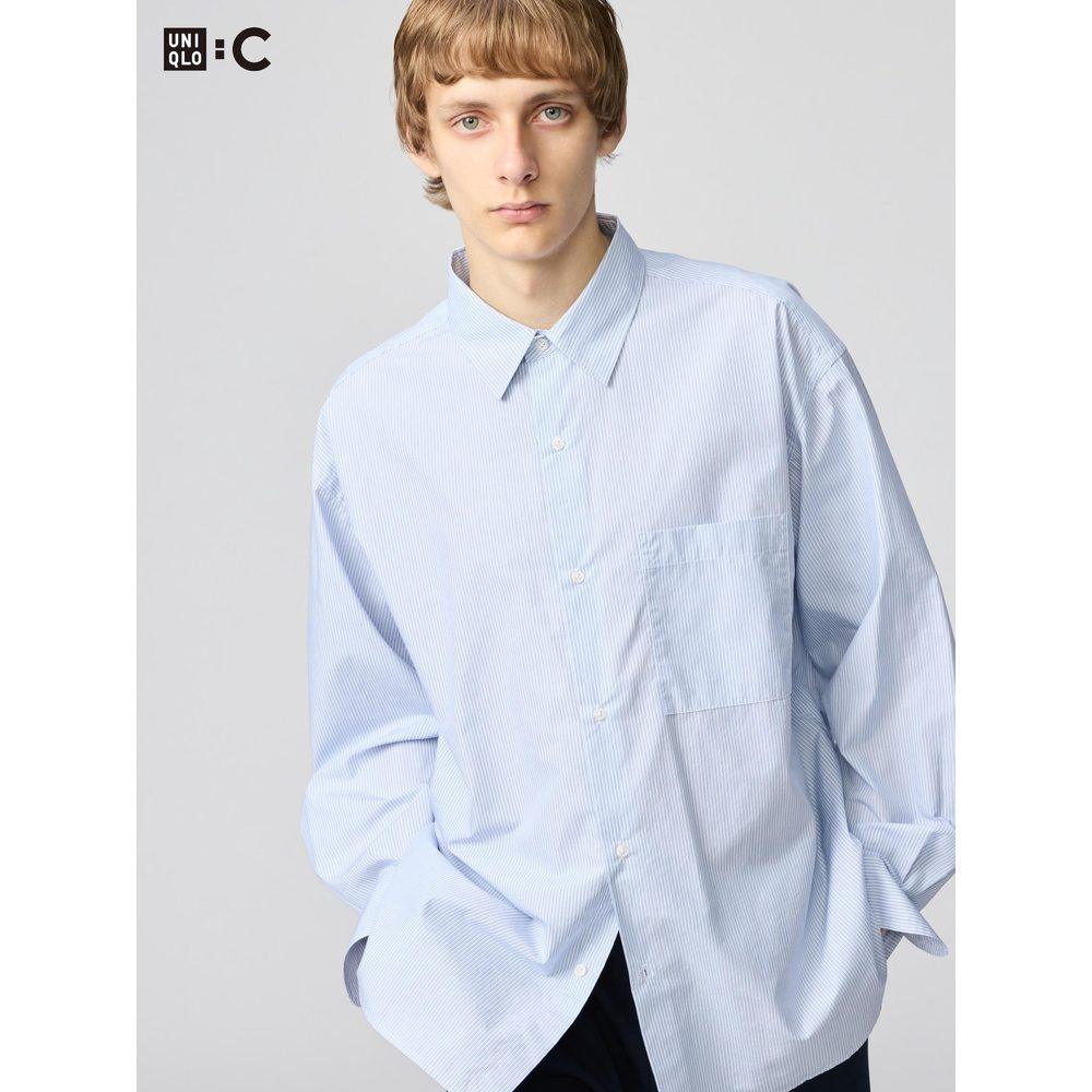 日潮跑腿UNIQLO优衣库 宽大衬衫条纹 62 BLUE 男女兼用 XS 480763