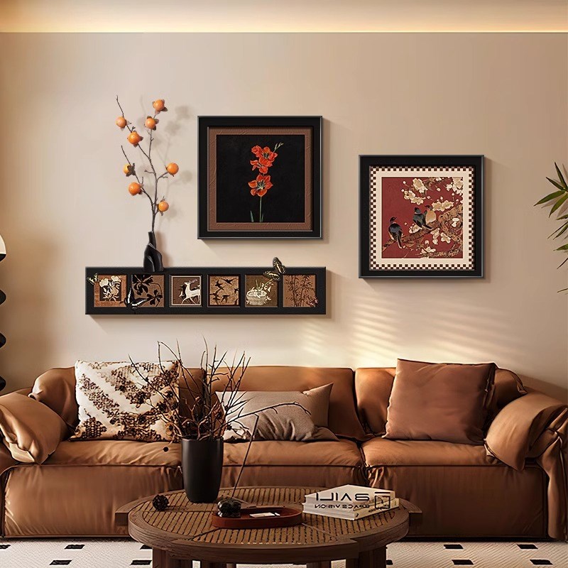 法式复古客厅装饰画中古风高级感沙发背景墙挂画金钱豹组合墙壁画