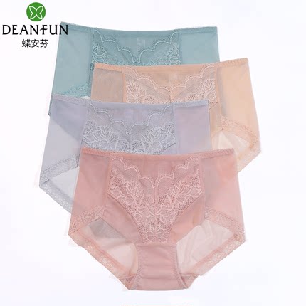 蝶安芬中腰蕾丝内裤女夏薄款收腹提臀性感无痕透气大码包臀三角裤