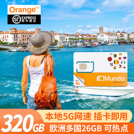 欧洲电话卡orange欧盟多国通用4G/5G手机上网法国流量卡旅游SIM卡