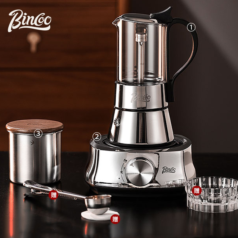 bincoo摩卡壶双阀煮咖啡机小型家用不锈钢意式器具手冲玻璃咖啡壶