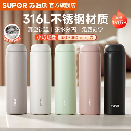 苏泊尔保温杯女士高颜值316L不锈钢学生礼物定制泡茶水杯子新款男