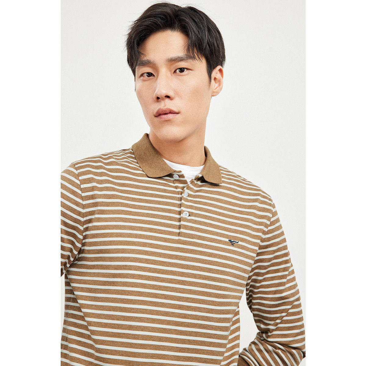 七匹狼长袖polo衫男士2025新款秋季条纹纯棉t恤中年商务上衣男装