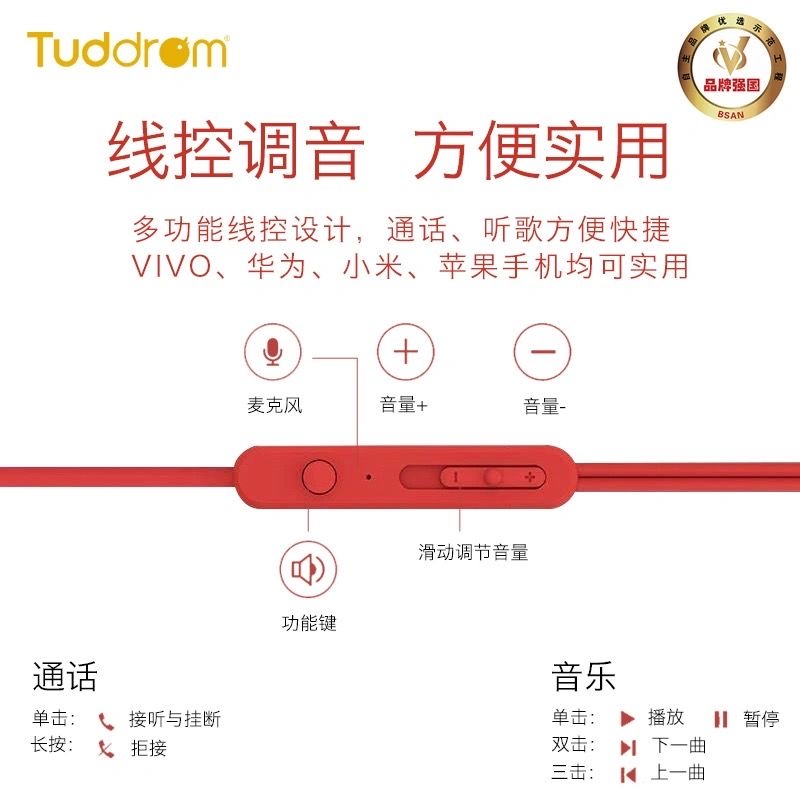 Tuddrom小魔鸭Mo5新款入耳式运动有线控耳机带麦耳麦高音质睡眠