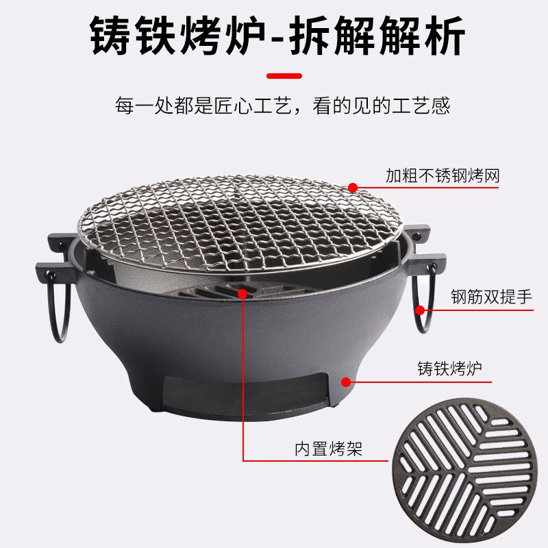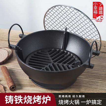 小幸福烧烤炉烤肉家用煮茶圆形烤火木炭户外多功能烤炉围炉煮茶炉