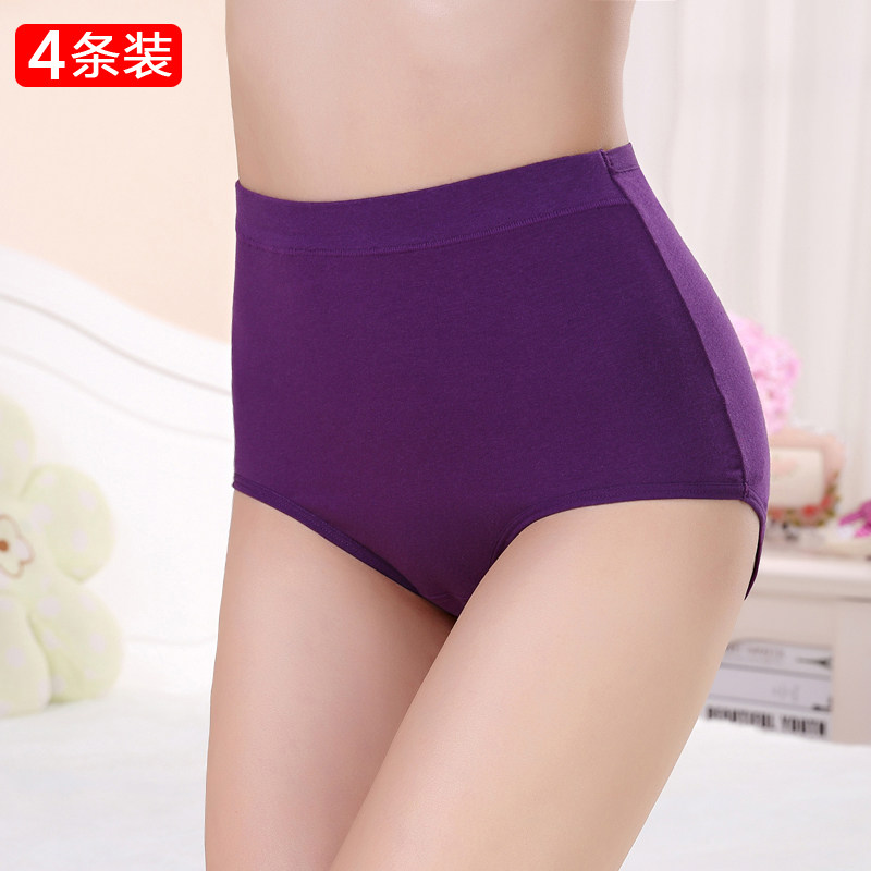 4条装高腰内裤女纯棉胖mm中老年