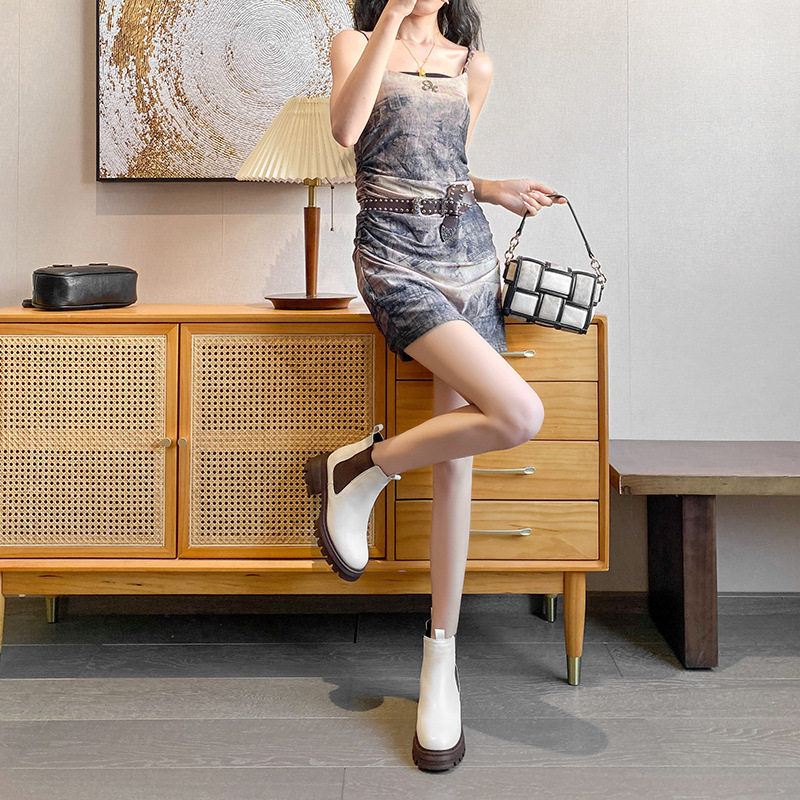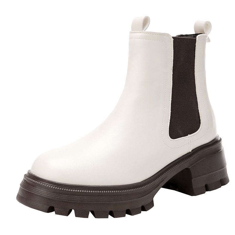 9lm白色烟筒靴女春秋新款时尚小码内增高厚底切尔西短靴33中筒靴