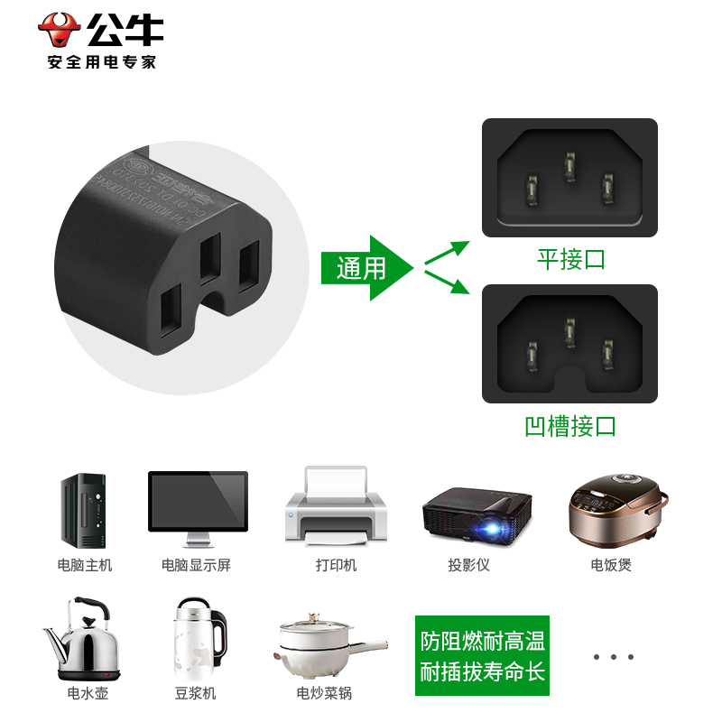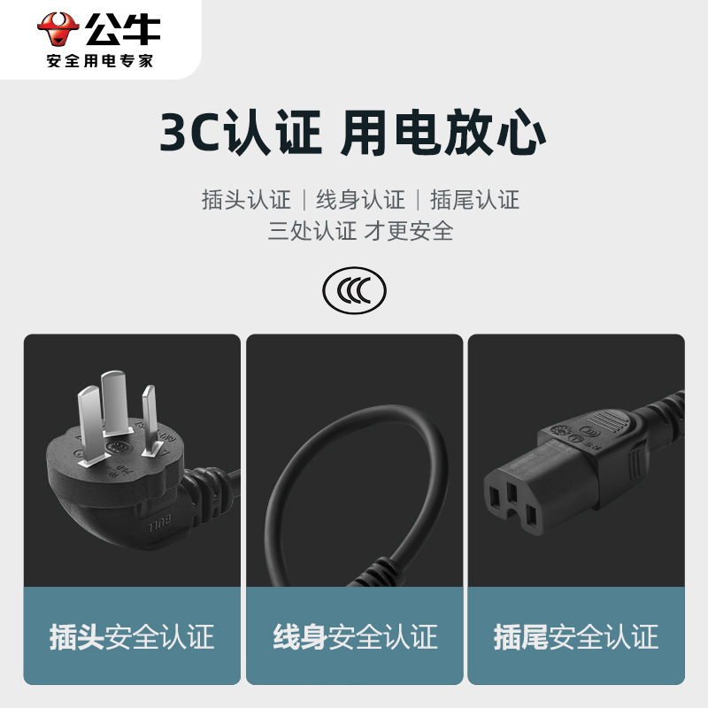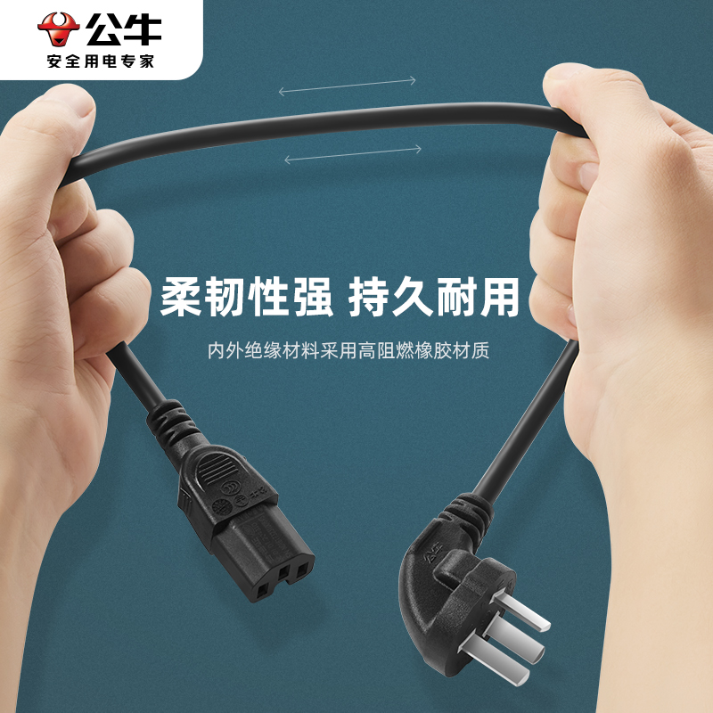 公牛电脑屏幕电源线台式主机电饭煲锅电水壶豆浆机通用三孔连接线