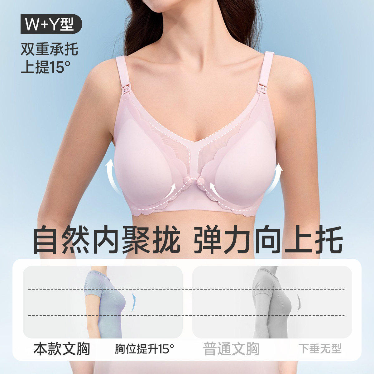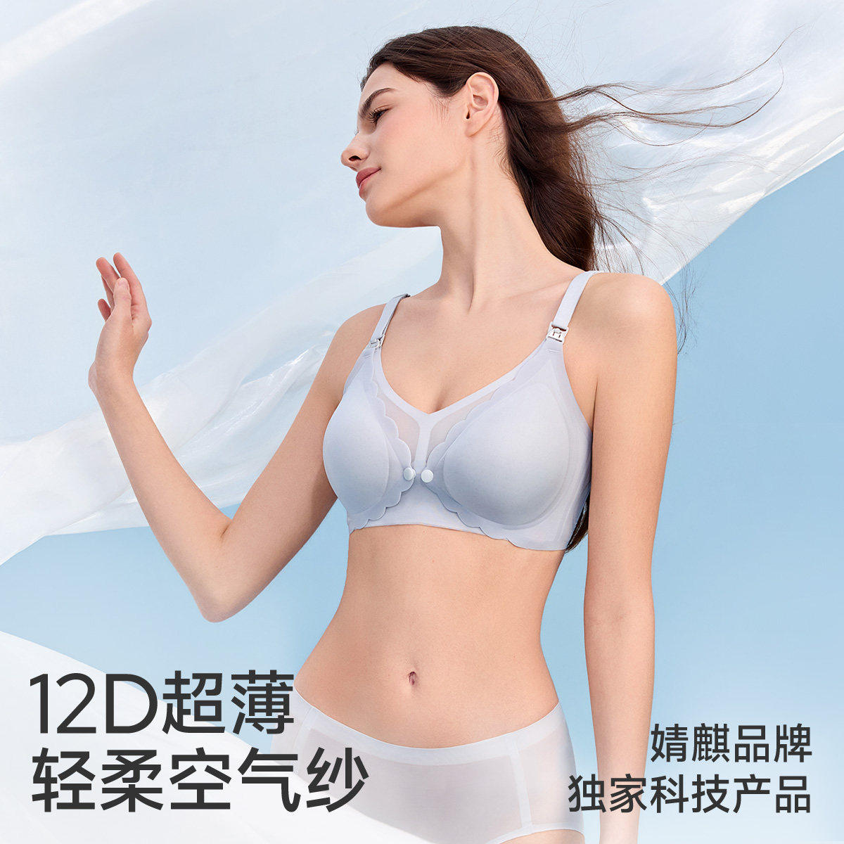 婧麒夏季超薄前开扣凉感透气哺乳内衣聚拢防下垂产后喂奶孕妇文胸