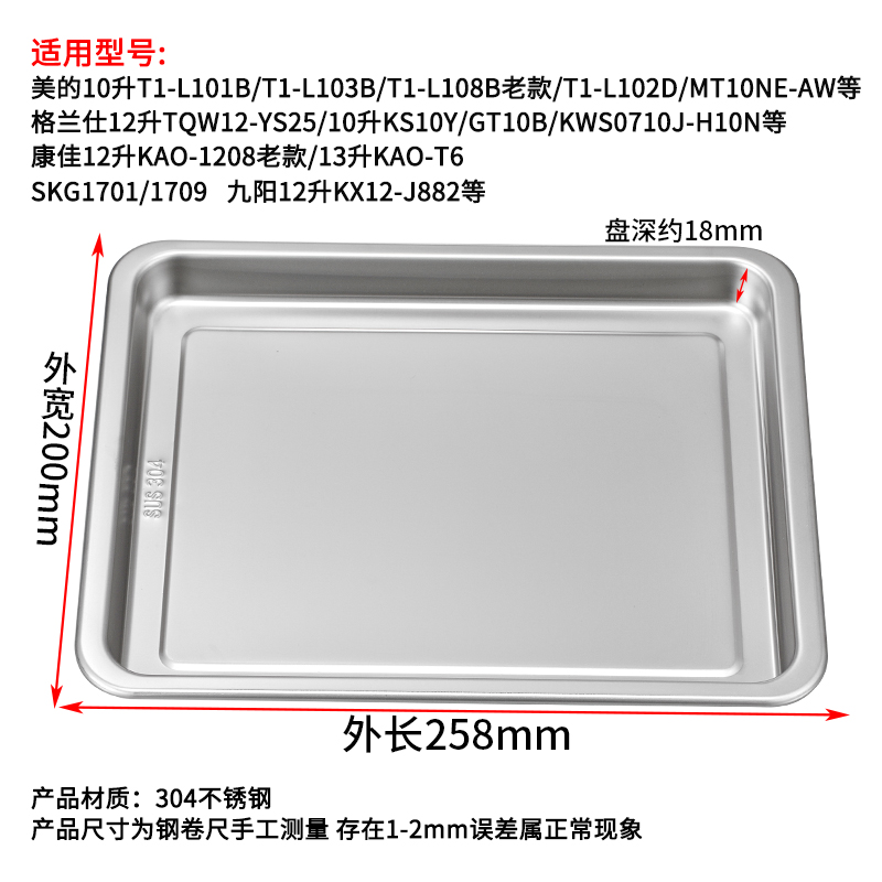 304不锈钢烤盘家用适用九阳苏泊尔格兰仕电蒸烤箱托盘烧烤盘配件