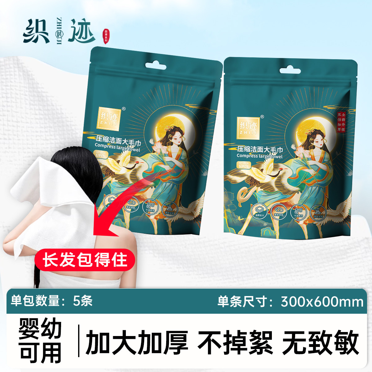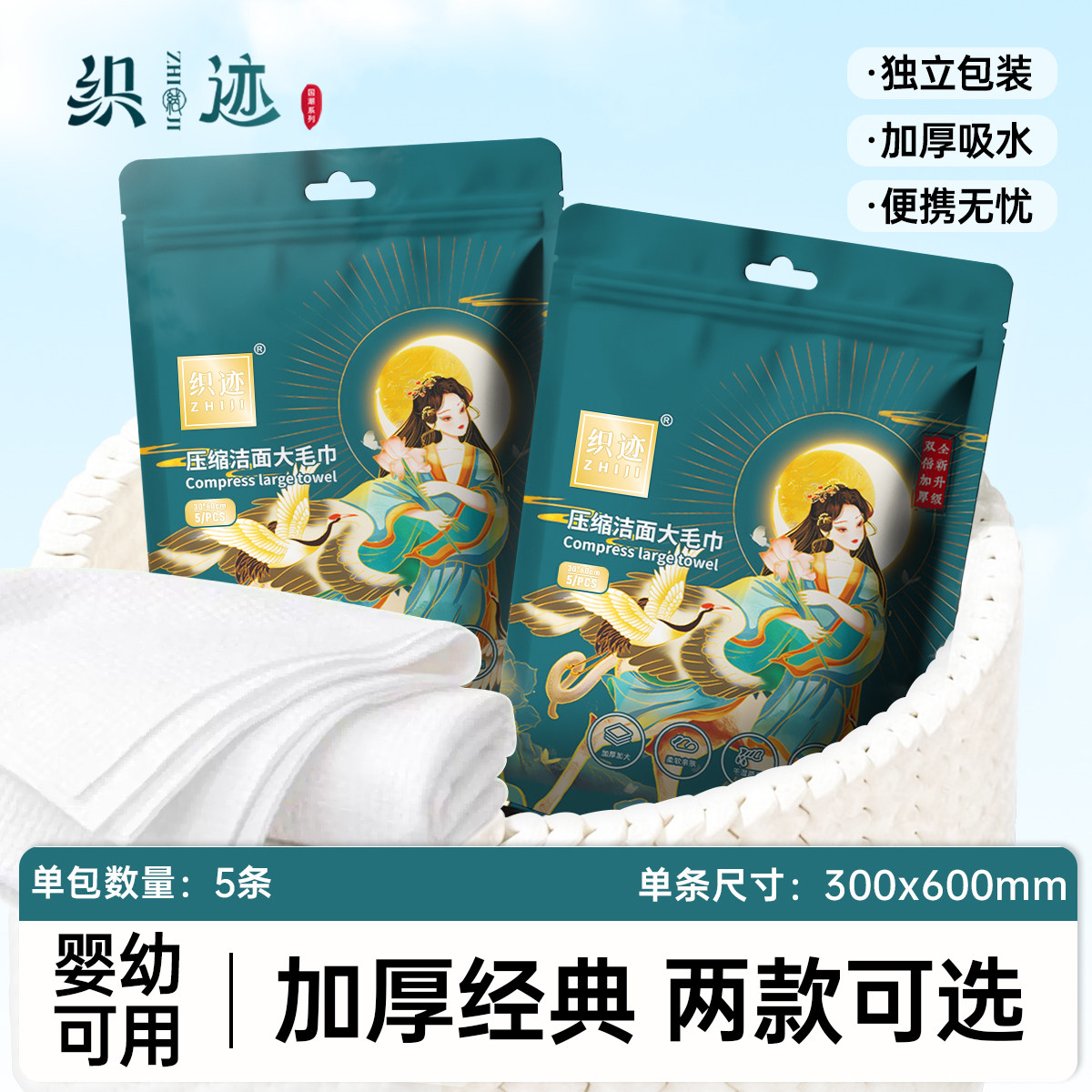 织迹 升级款30*60加厚压缩大毛巾浴巾包洗脸巾旅游洁面巾擦脸巾