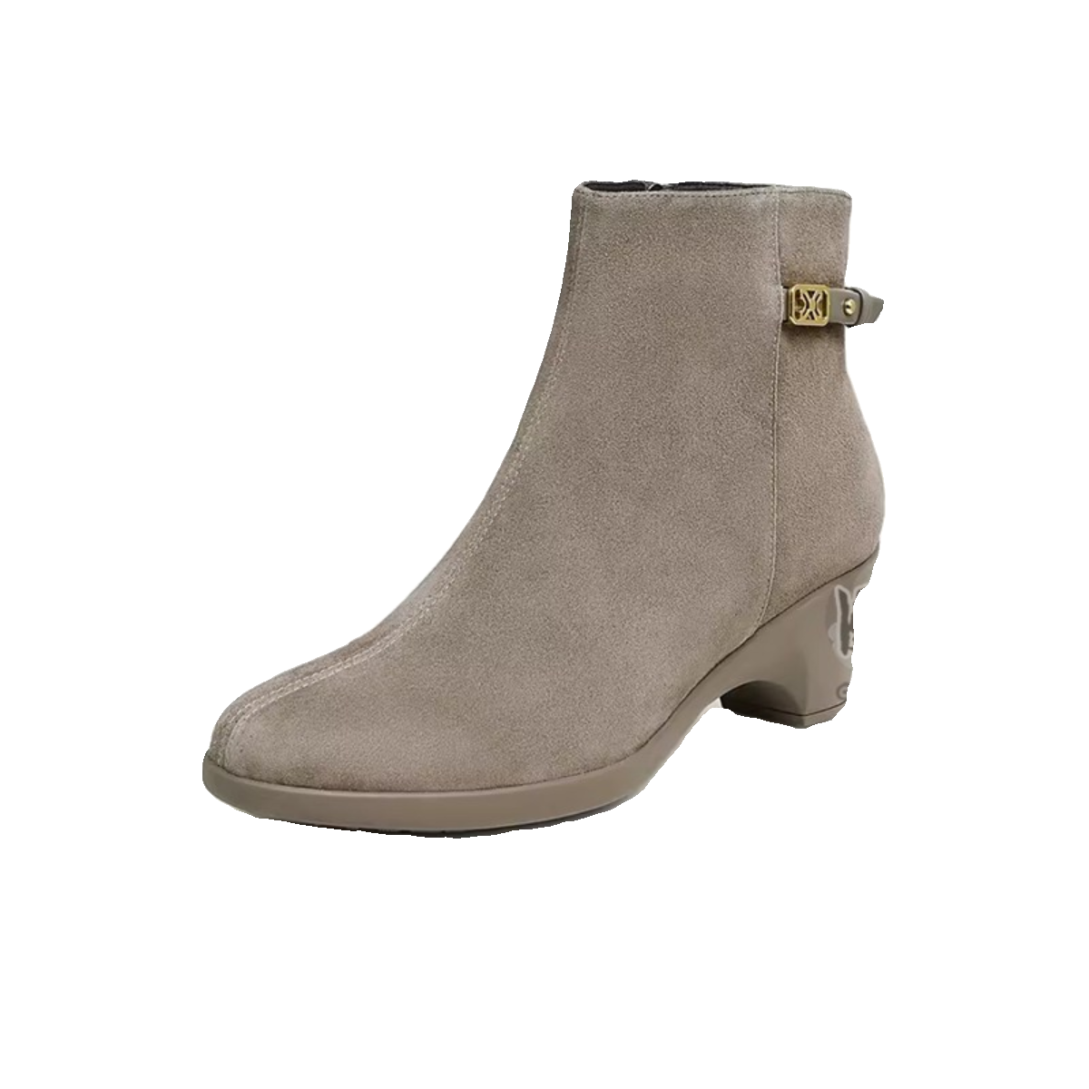 BASTO/百思图 2023冬季时尚拉链粗跟女鞋短筒靴国内代购TJ743 DD3