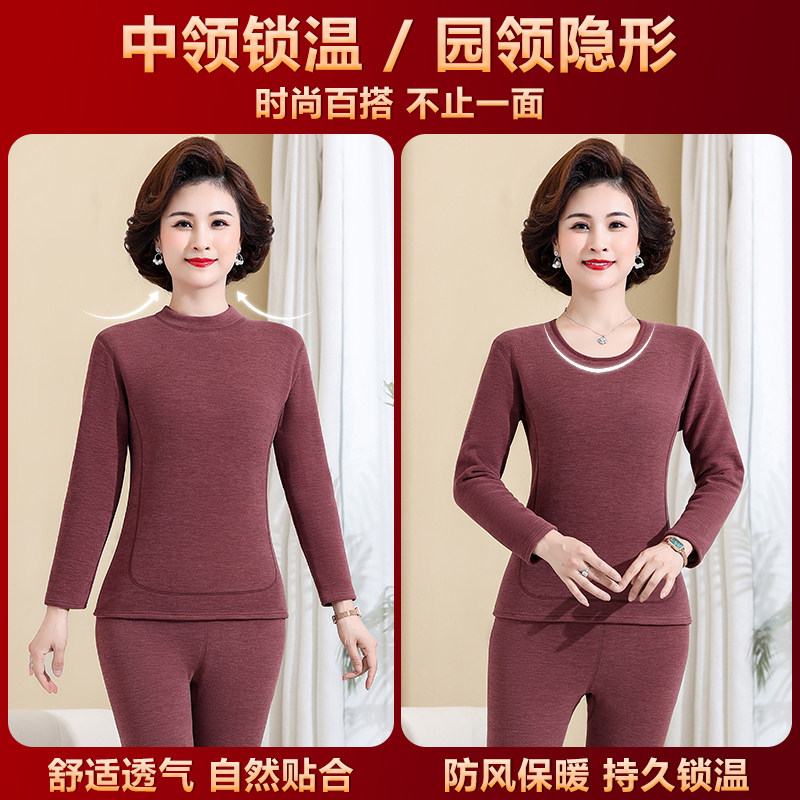 中老年爸爸羊绒蚕丝贴片保暖内衣妈妈加绒加厚秋衣秋裤套装女冬季