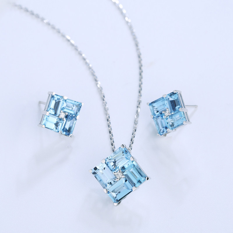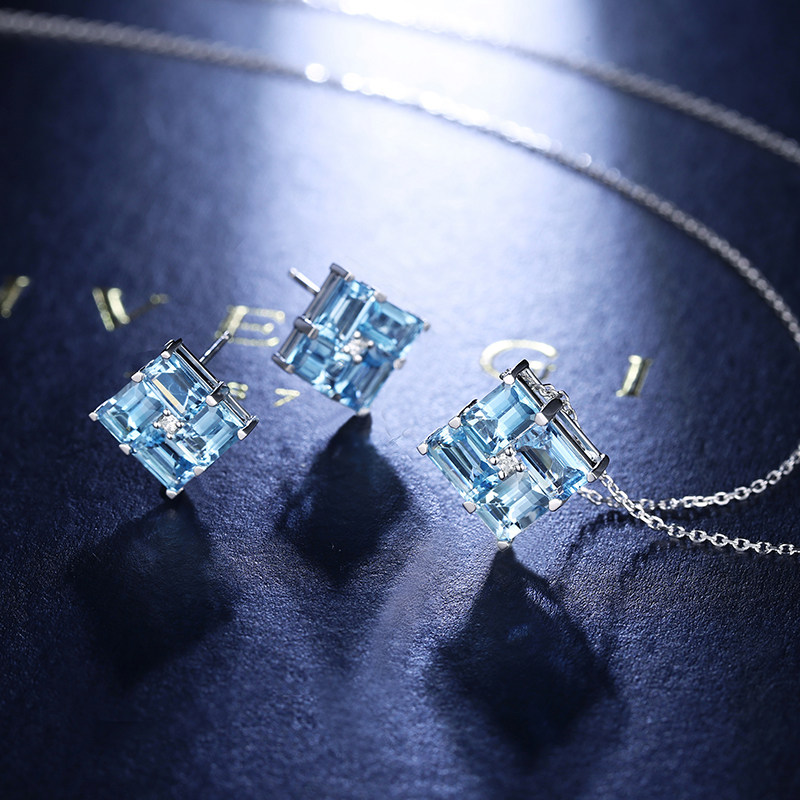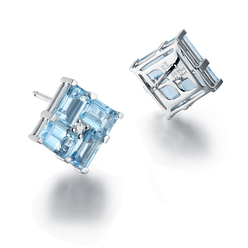 HIVENGI/海梵纪天然海蓝宝石耳钉 18K白金镶嵌钻石彩宝男女