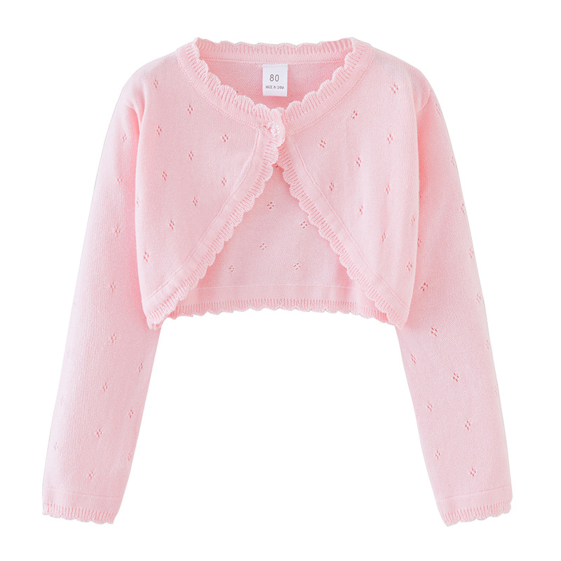女童小披肩春夏季镂空针织开衫薄款长袖外套配吊带裙子空调衫外搭