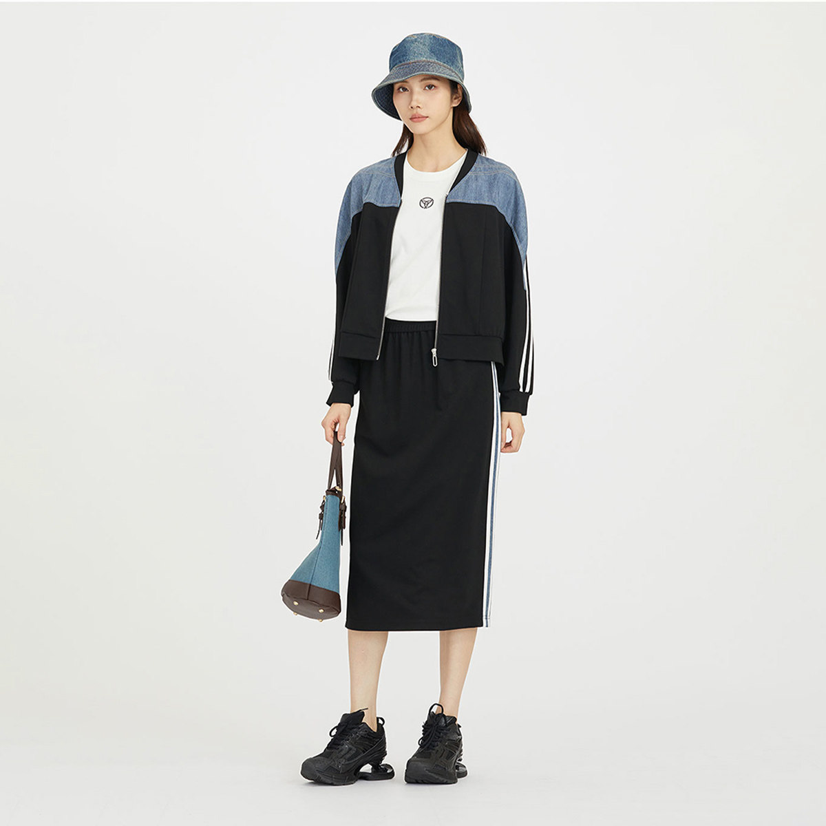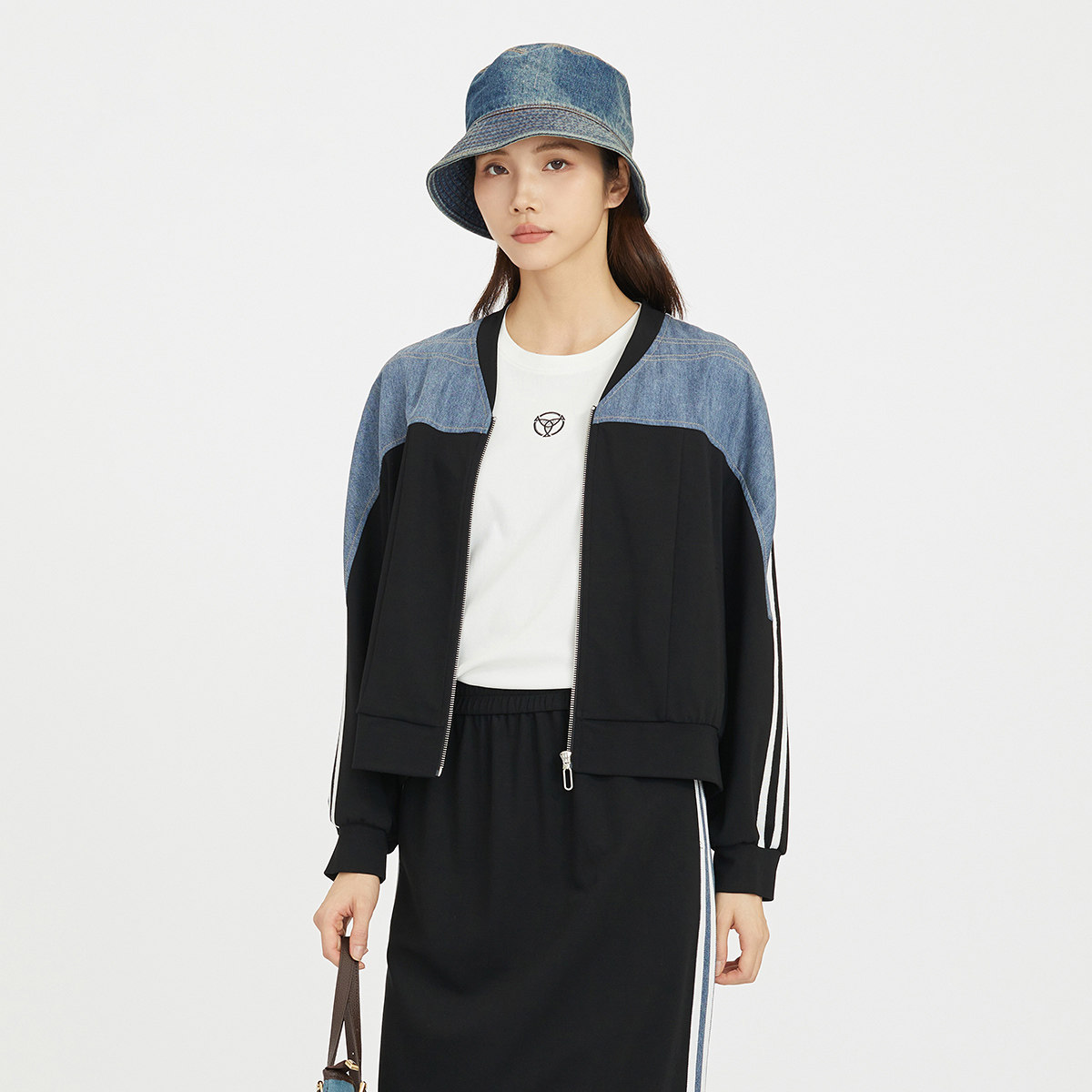 SANI奥莱特卖商场同款莫代尔潮酷拼接棒球领外套女春秋季百搭开衫