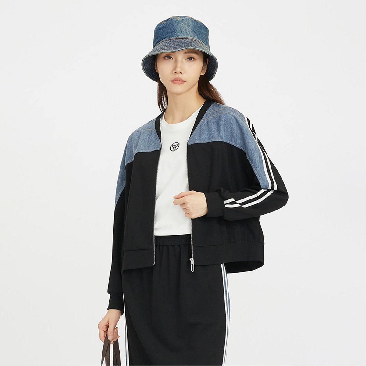 莫代尔潮酷拼接百搭棒球领外套女