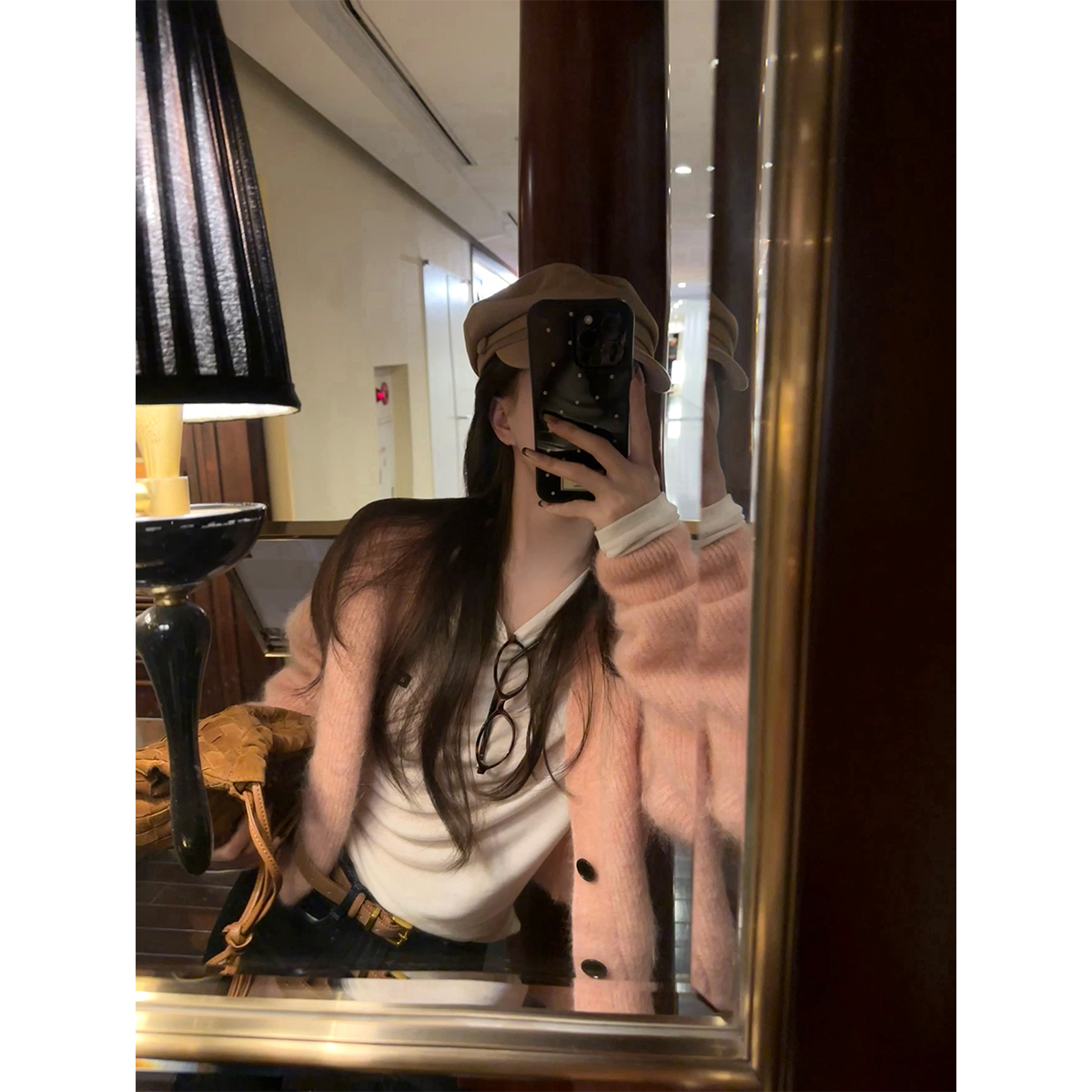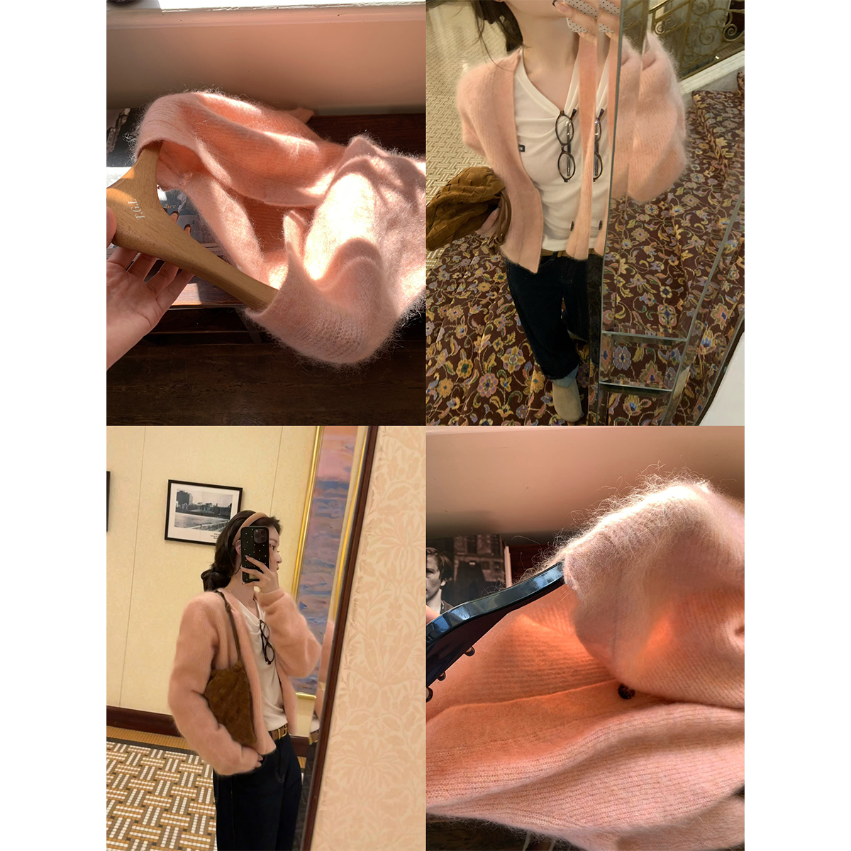 【现货4折】咖喱汤汤TGL【治愈系】慵懒风马海绒针织开衫短款上衣