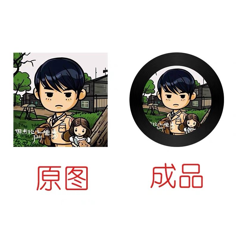 圆形贴纸定制黑胶唱片DIY卡通照片明星应援LOG防水不干胶