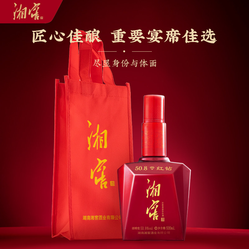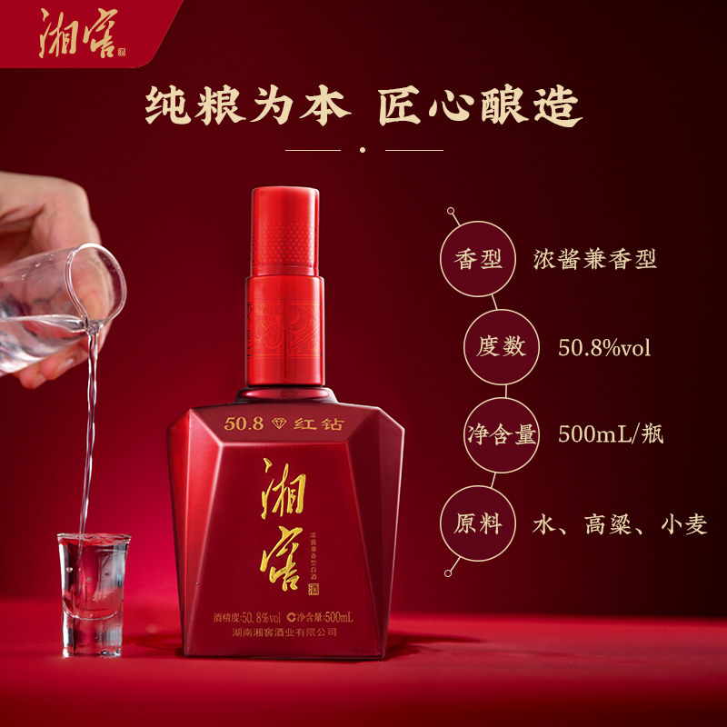【湖南名酒】湘窖红钻酒浓酱兼香50.8度高度白酒光瓶500mL整箱