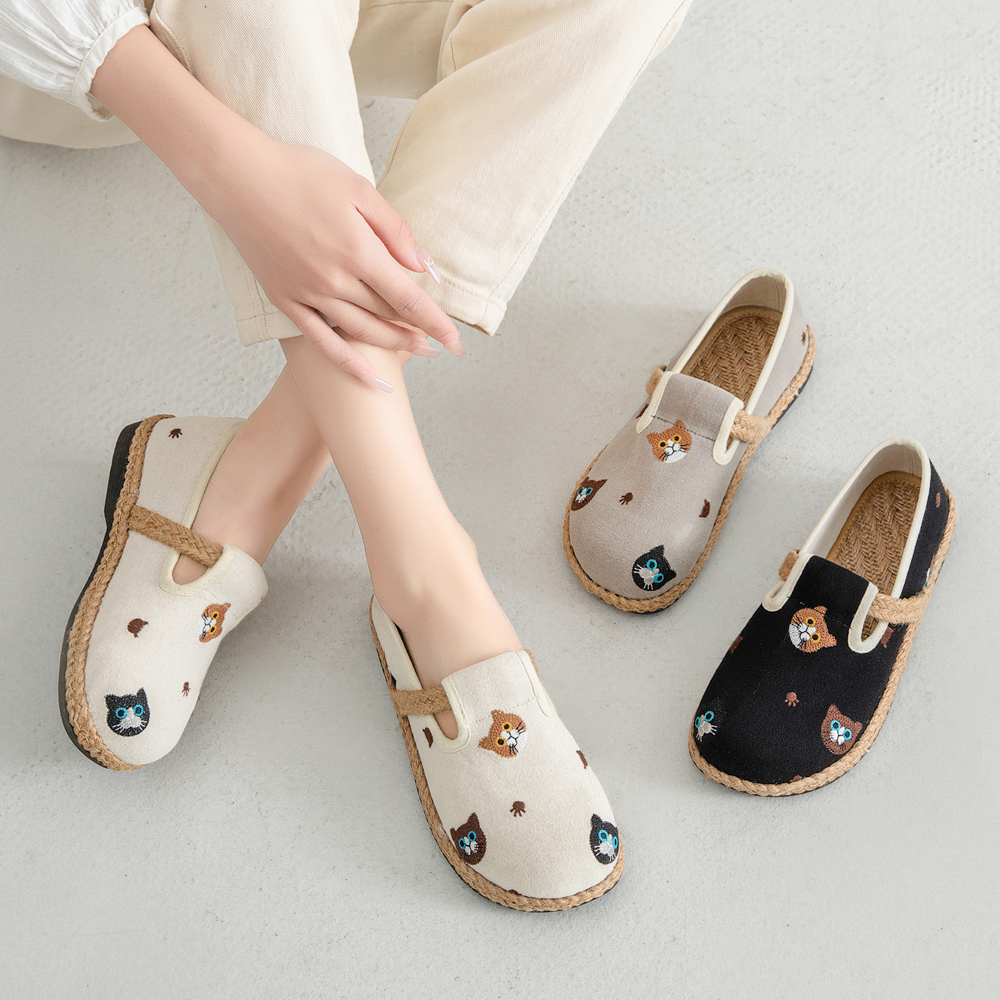 新款老北京布鞋亚麻女鞋懒人绣花鞋软底透气民族风休闲渔夫鞋亚麻