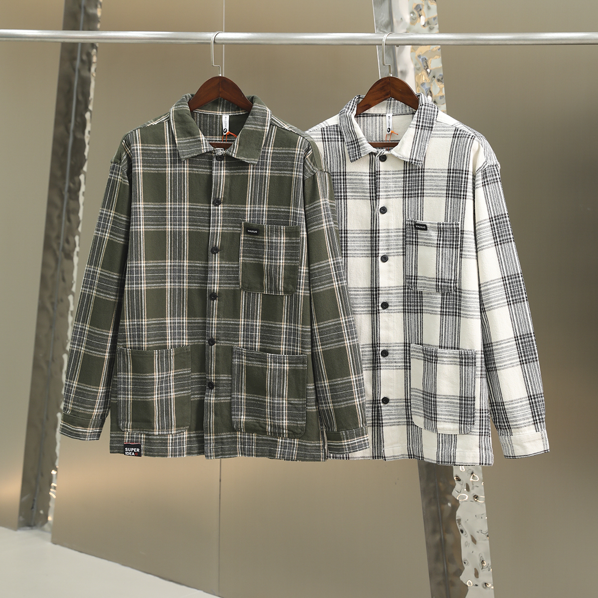 日系复古!重磅磨毛全棉!秋季新款男士时尚格子衬衫长袖衬衣外套