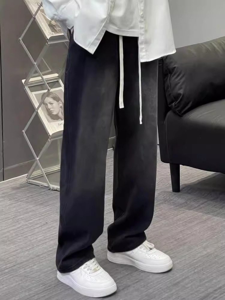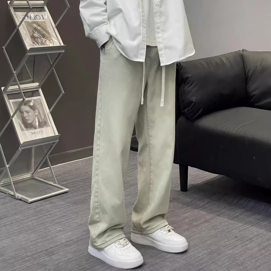 潮标蒂松紧腰牛仔裤男款直筒宽松