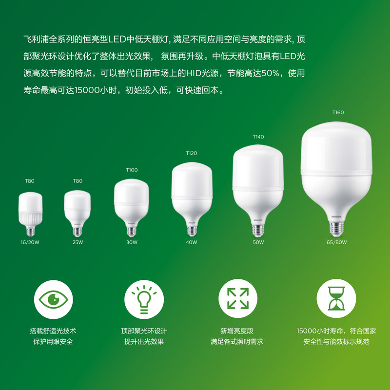 飞利浦中低天棚led灯泡E27E40超亮节能灯大功率工厂车间照明球泡