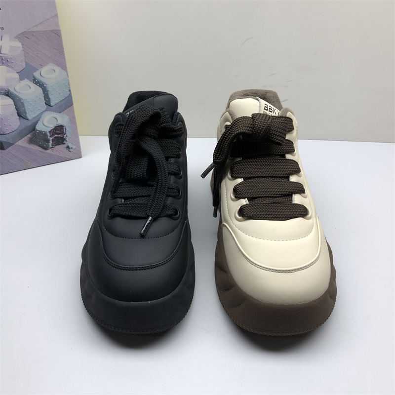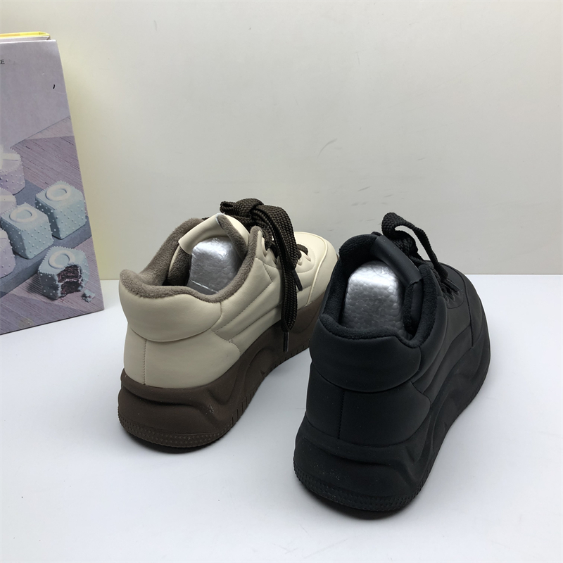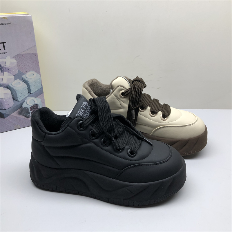 薄棉牛皮板鞋圆头厚底