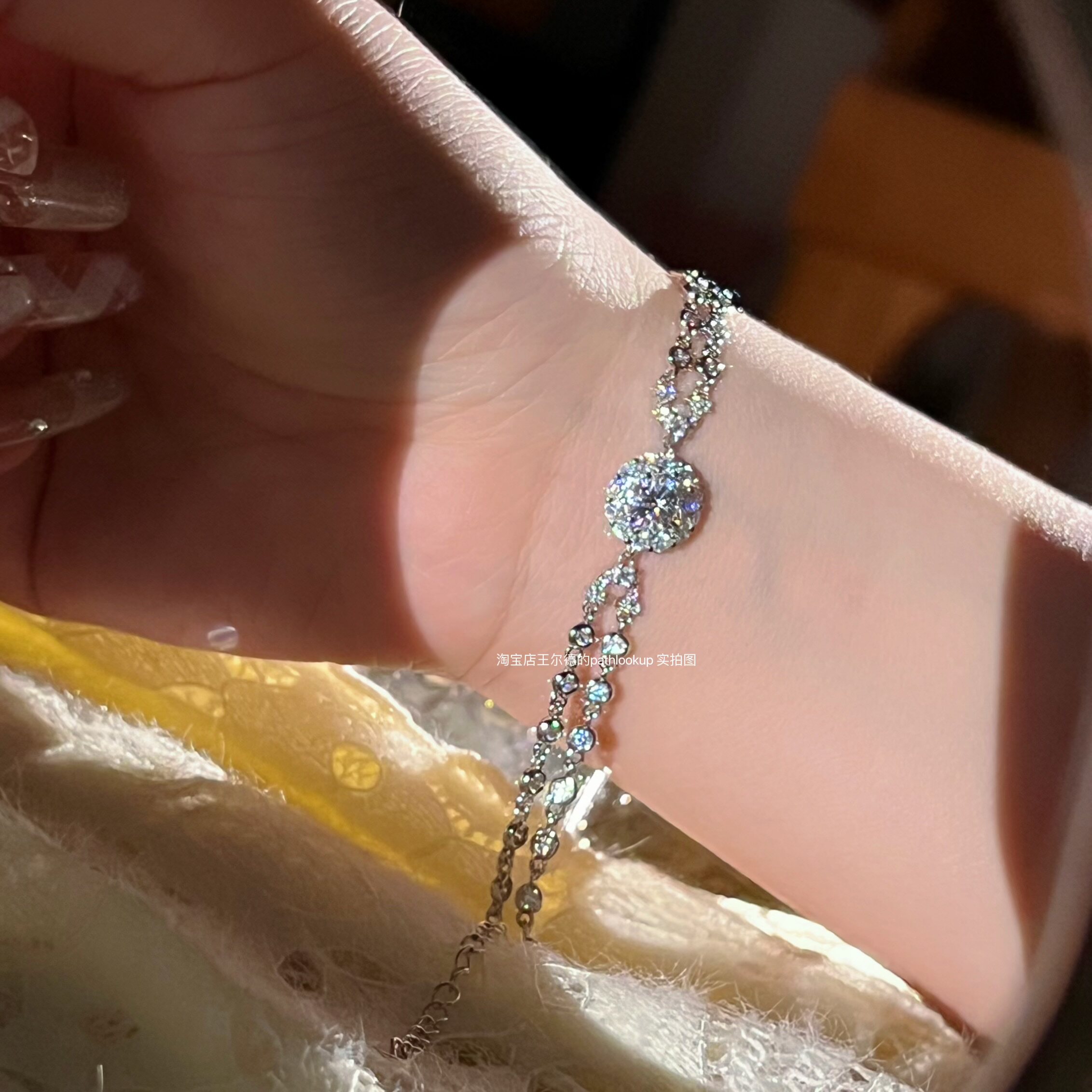 18K镀金爆闪满钻泡泡一克拉高碳钻石手链女极简轻奢ins风手镯百搭