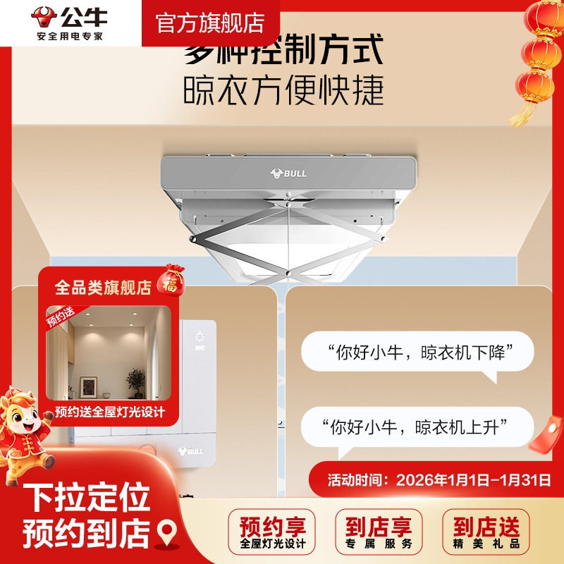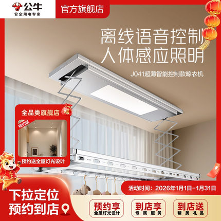 【门店同款】公牛离线语音智能语音晾衣杆衣架升降晾衣机GJ041AIZ