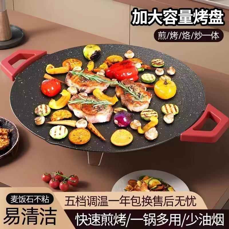 户外烤肉盘韩式铁板烤盘铸铁烧烤盘麦饭石不粘家用电陶卡式电磁炉