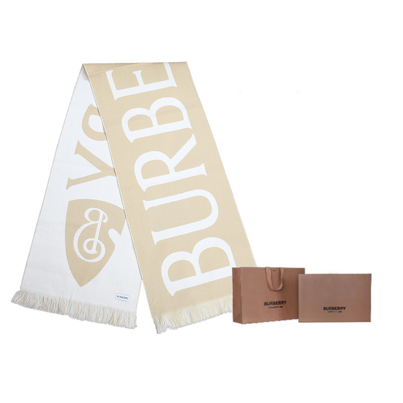 【自营】BURBERRY/博柏利绵羊毛情侣细穗流苏保暖围巾礼盒礼袋款
