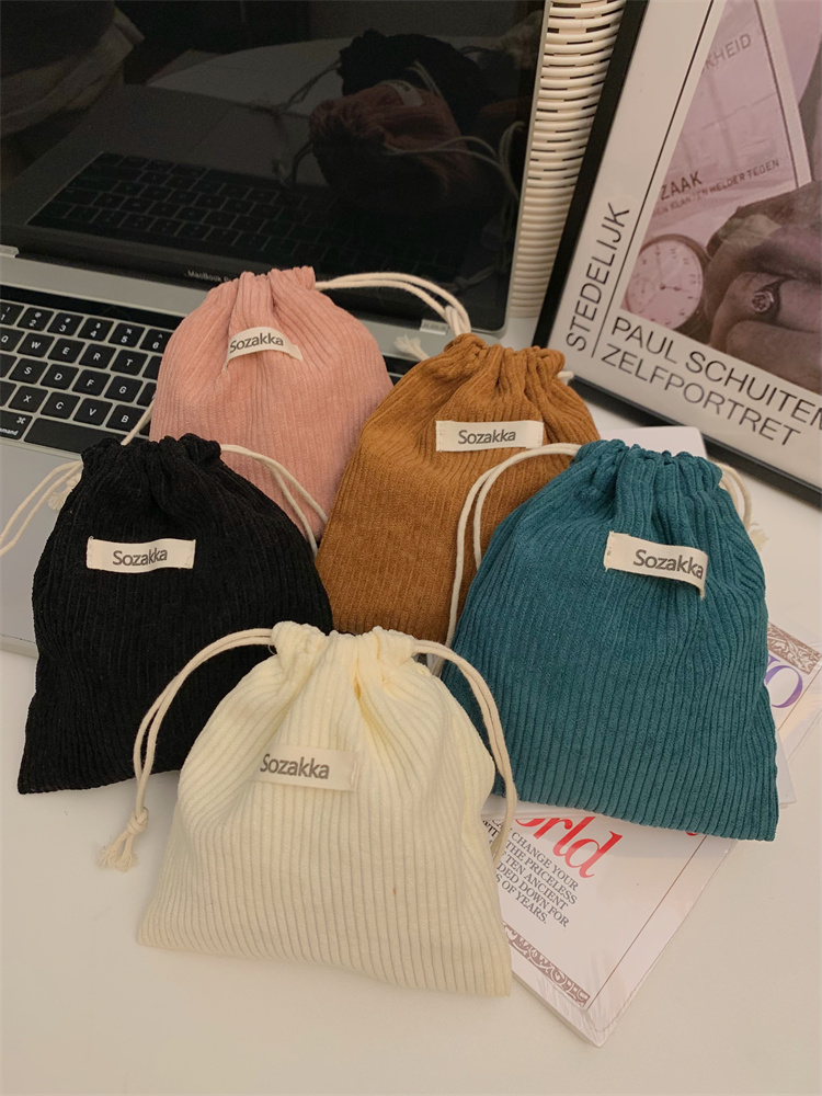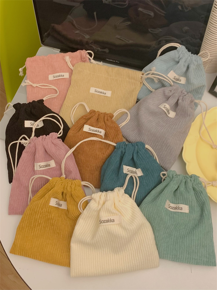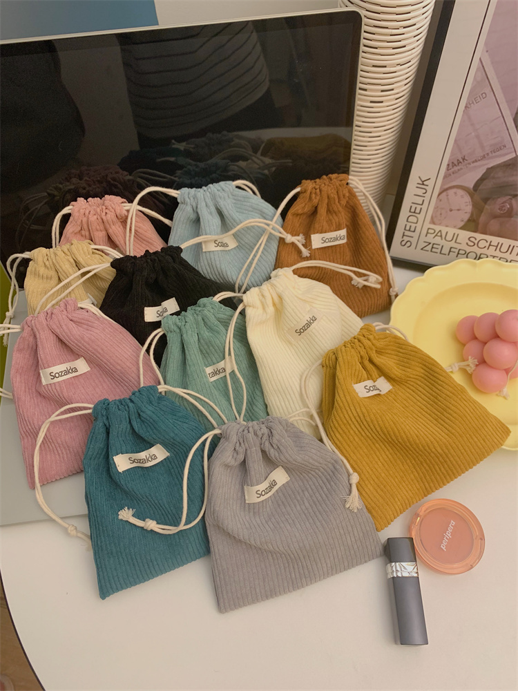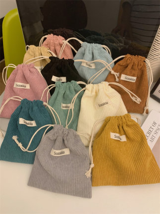 纯色灯芯绒织唛收纳袋抽绳束口袋