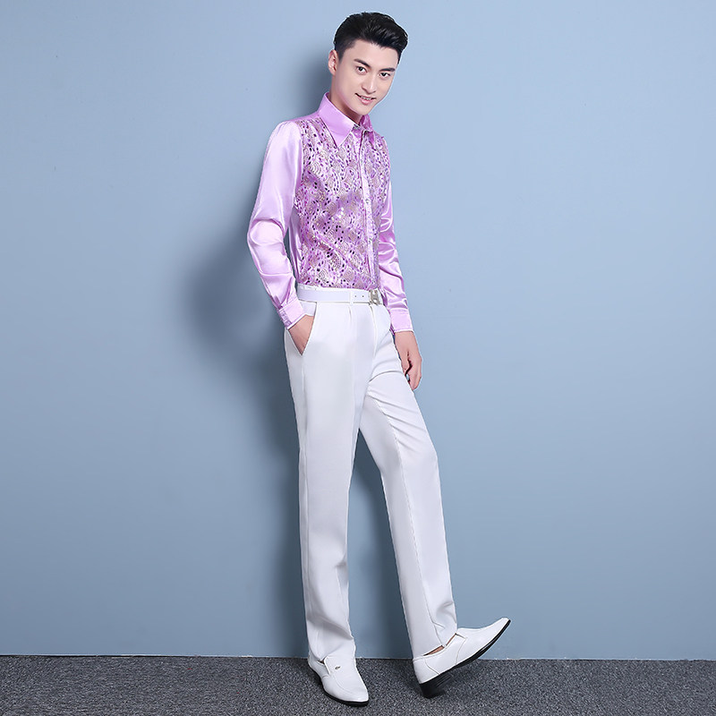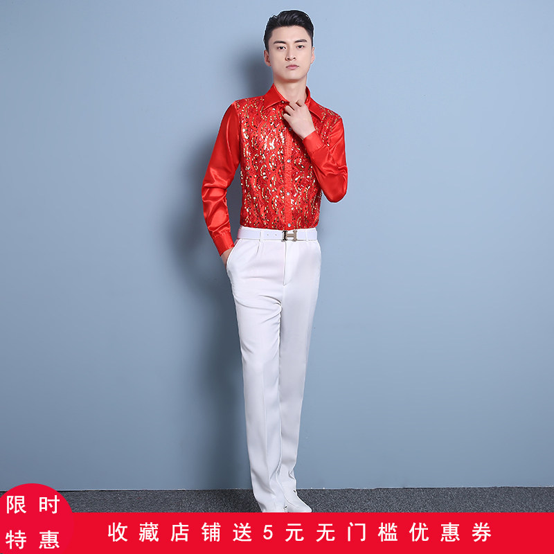 亮片广场舞表演歌手大码男士衬衣