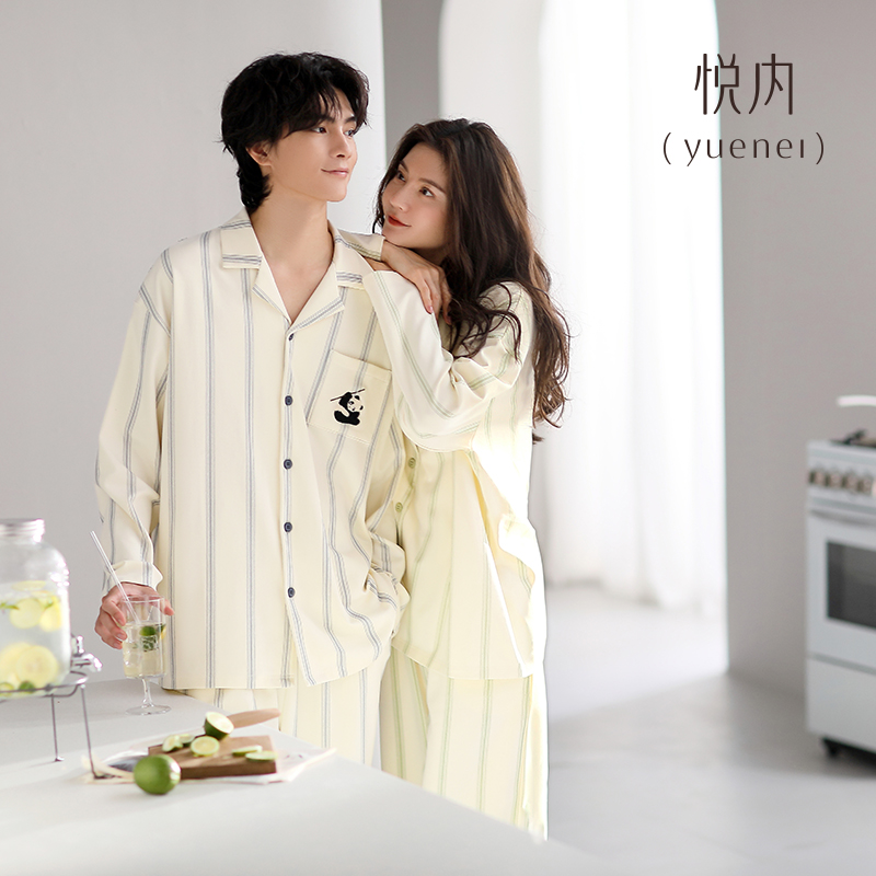 悦内情侣睡衣男士春秋款秋季长袖纯棉家居服女熊猫国潮休闲可外穿