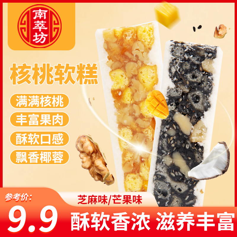 南萃坊芝麻芒果核桃软糕解馋特产小零食早餐点心休闲食品糕点小吃