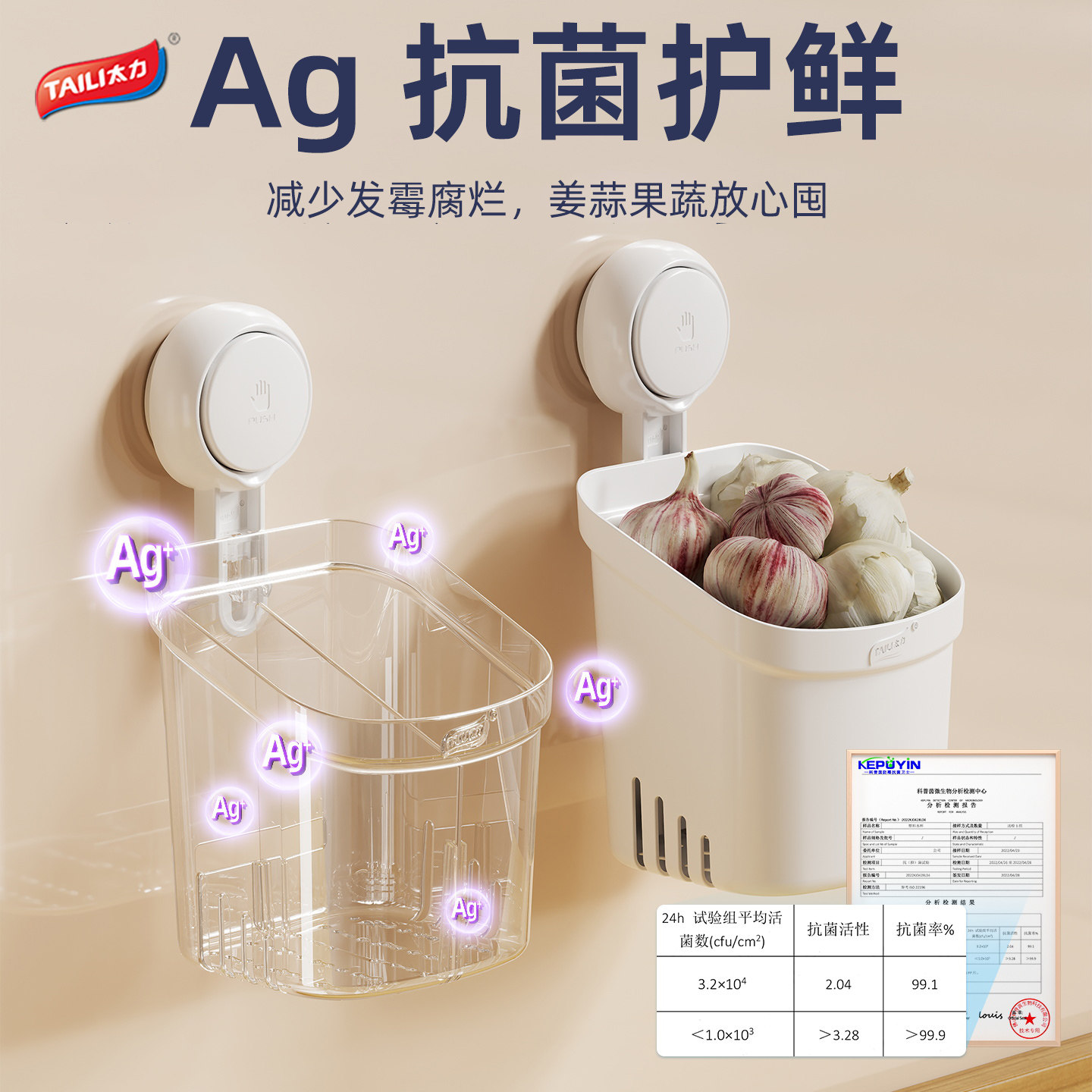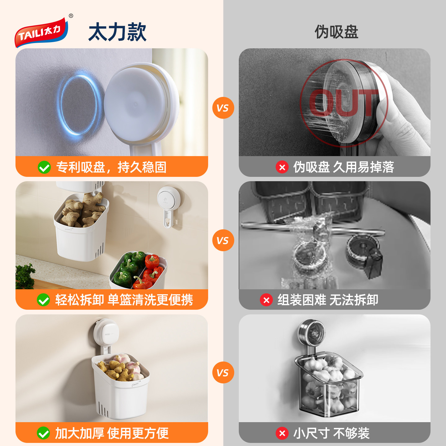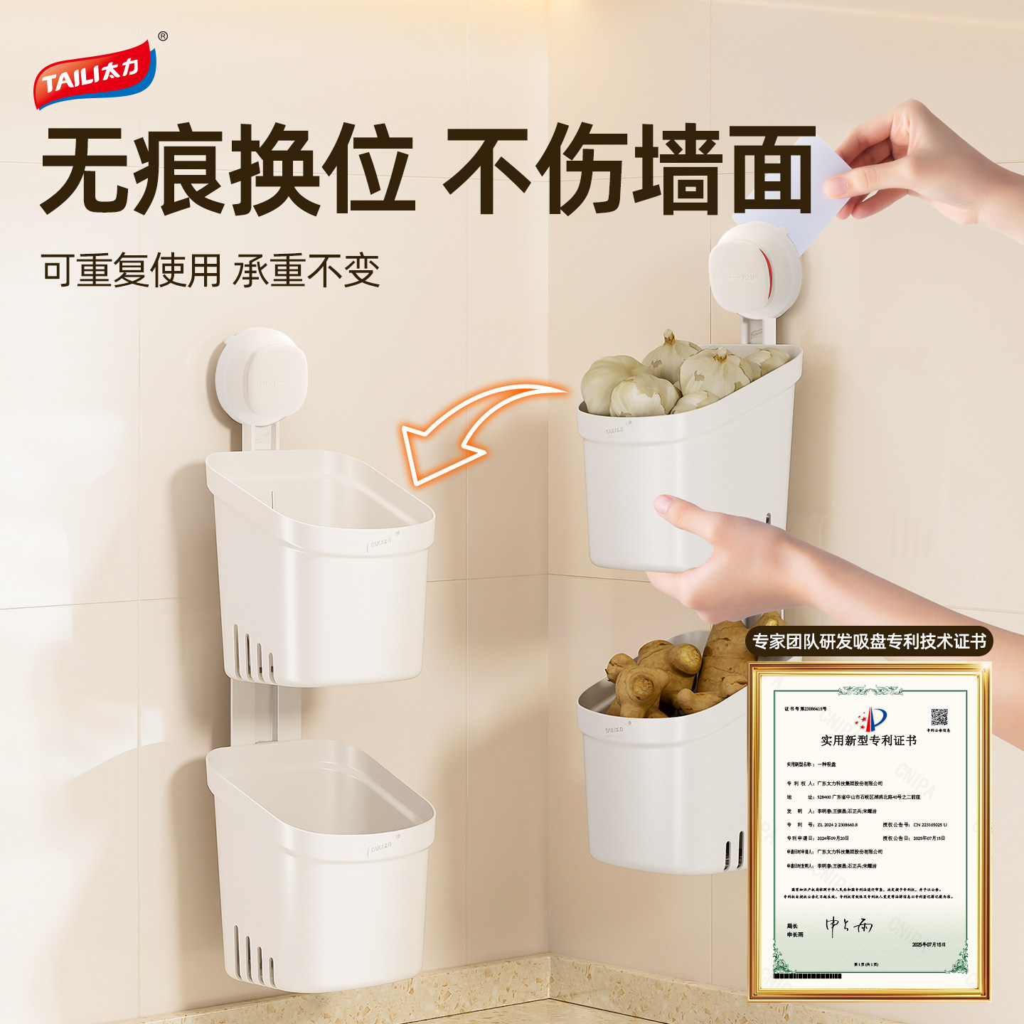 太力葱姜蒜收纳盒壁挂放生姜大蒜蔬菜篮吸盘置物架免打孔收纳神器