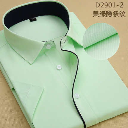 夏季薄款斜纹衬衫男短袖商务职业工装休闲绿色衬衣男青年寸衫修身