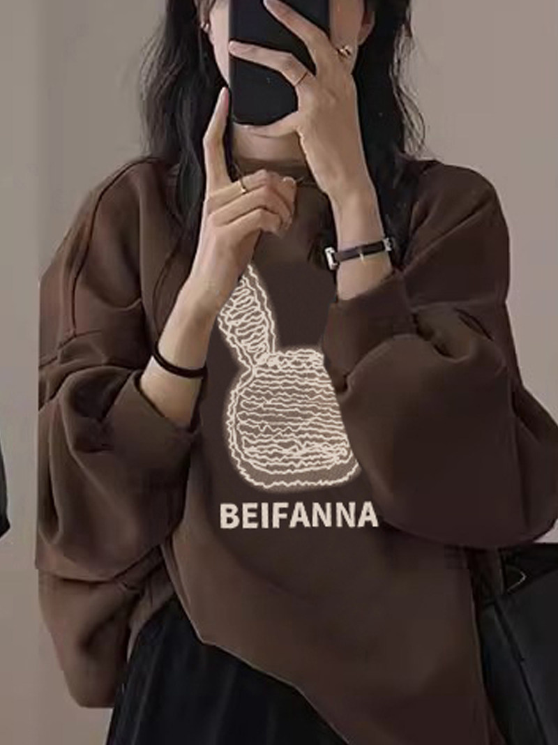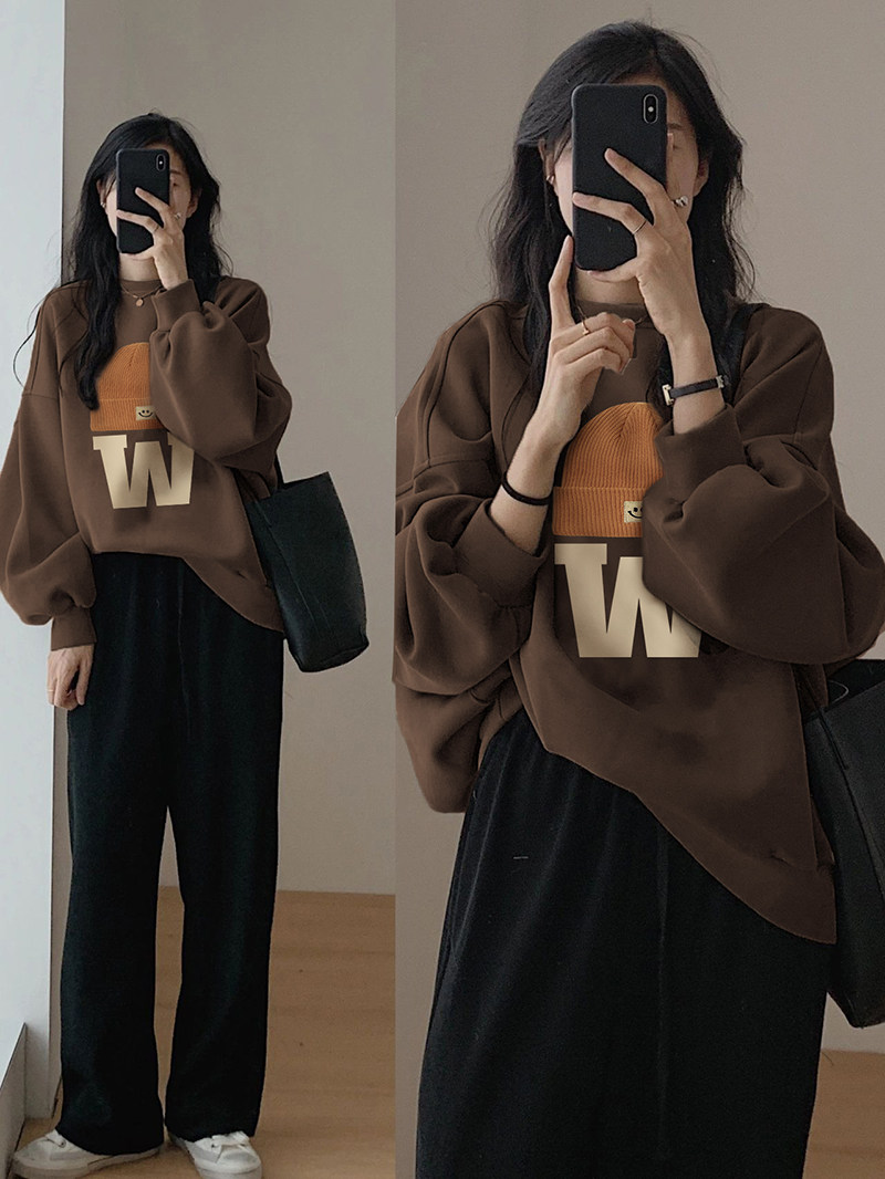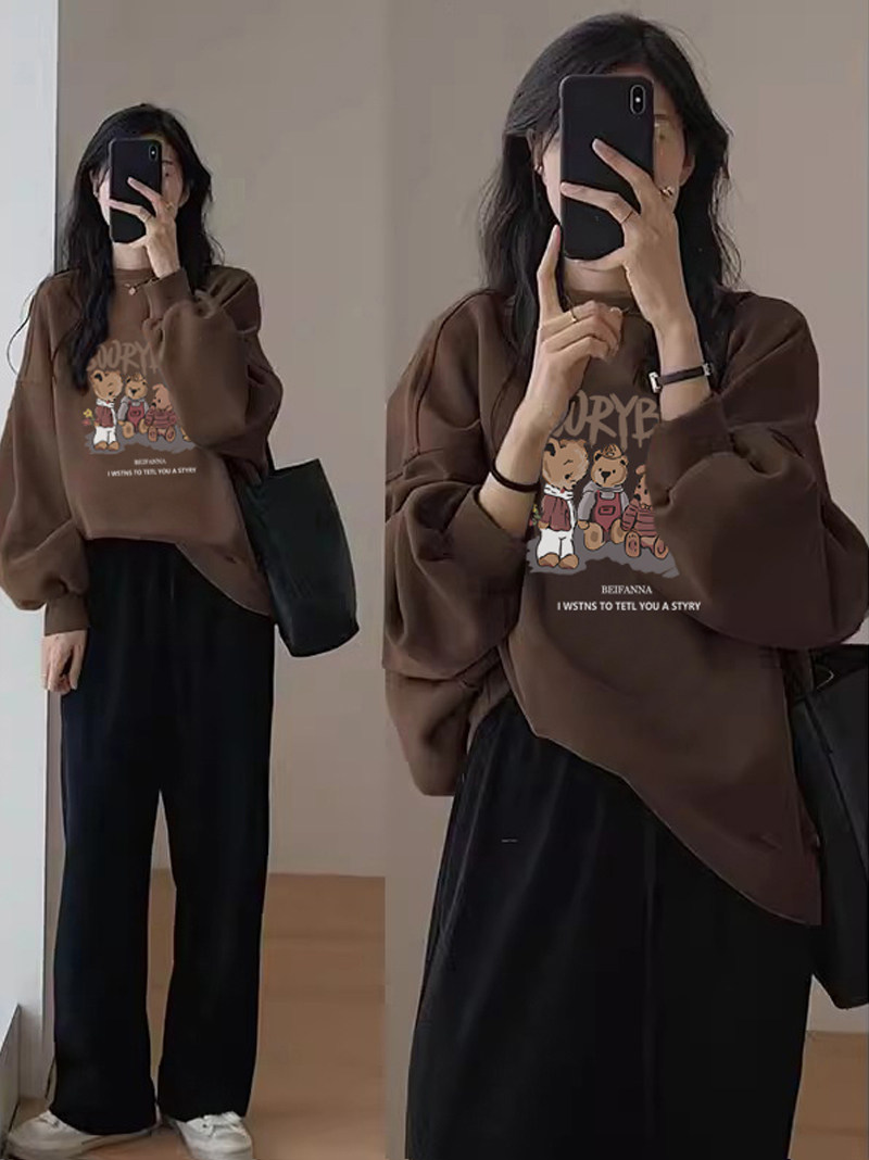 山东即墨加绒卫衣女款2025新款爆款秋冬季大码圆领oversize上衣