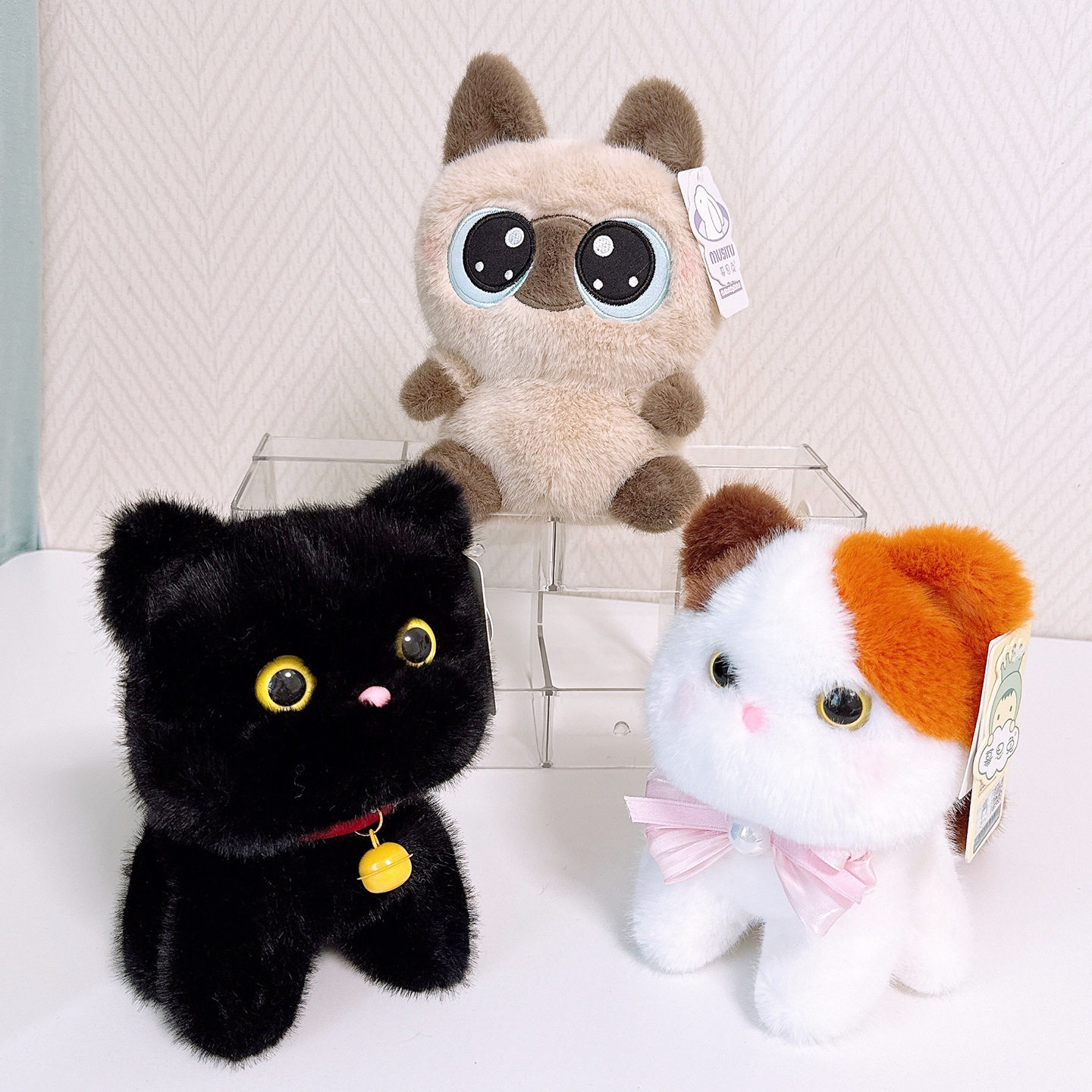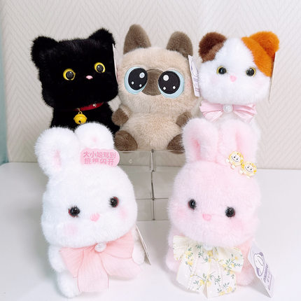 慕思兔黑色铃铛猫咪玩偶公仔暹罗喵毛绒玩具桌面摆件解压娃娃礼物