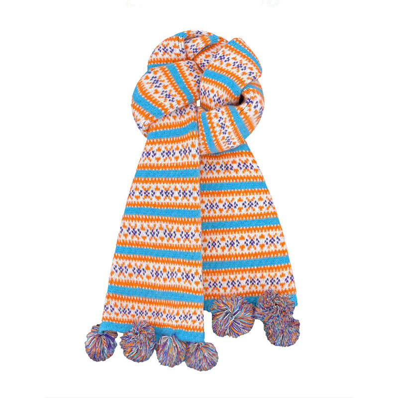 复古费尔岛风球球提花针织围巾