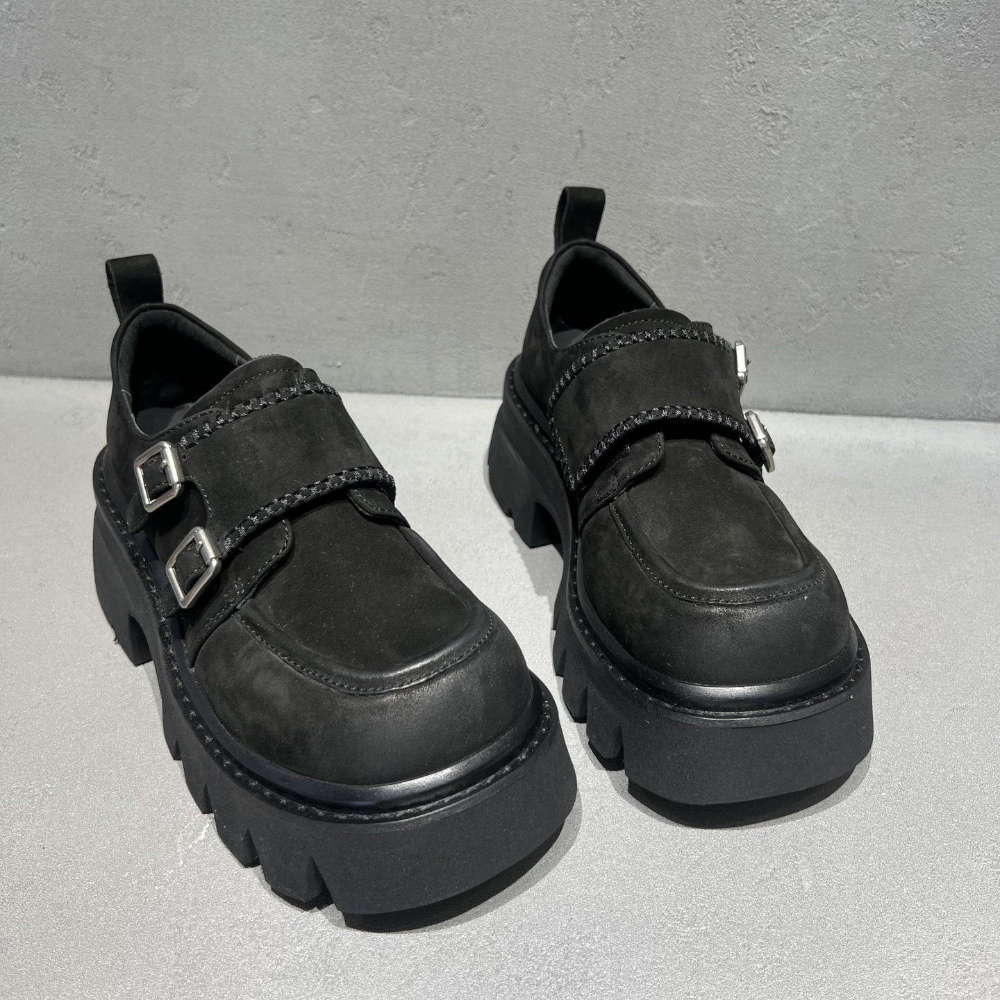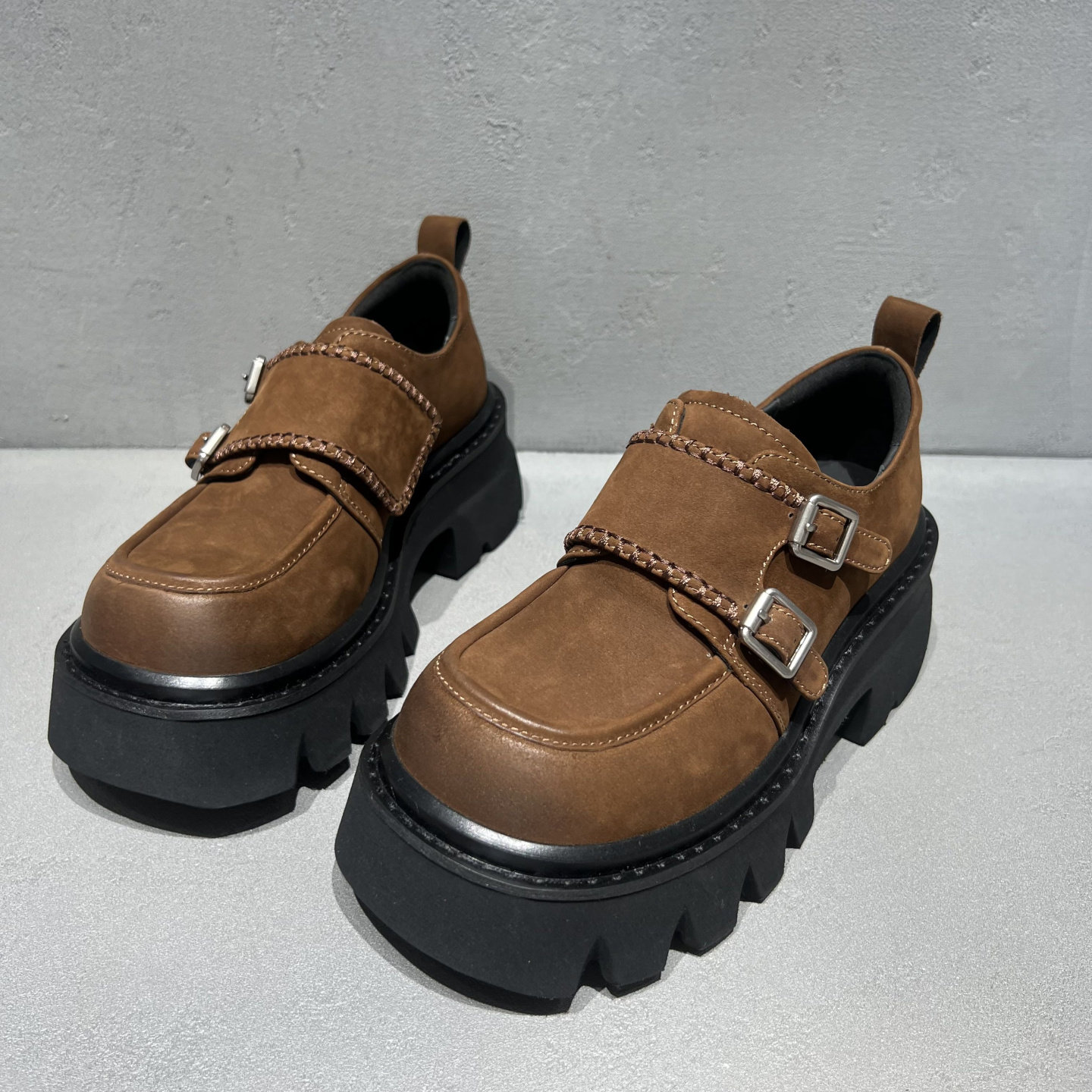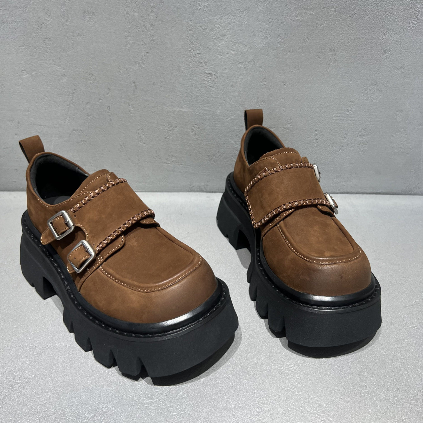 欧洲站先锋名典女鞋2025秋季新款真皮厚底皮带扣英伦风乐福鞋单鞋