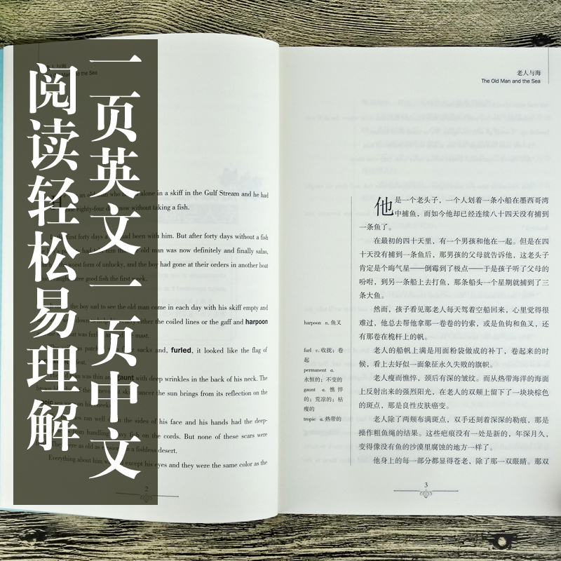 老人与海中英文双语版 金银岛格列佛游记鲁滨逊孙漂流记中英文对照双语版世界名著英汉对照互译学生课外阅读英文原版小说书籍