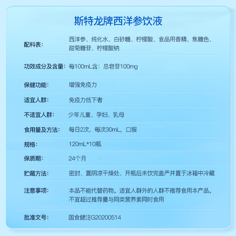 斯特龙牌西洋参饮液口服液