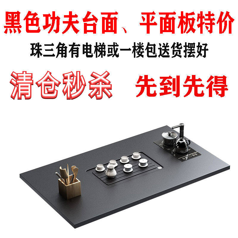 火烧石面板定制茶几电视柜餐桌台面家用转盘功夫茶台面板室外黑色