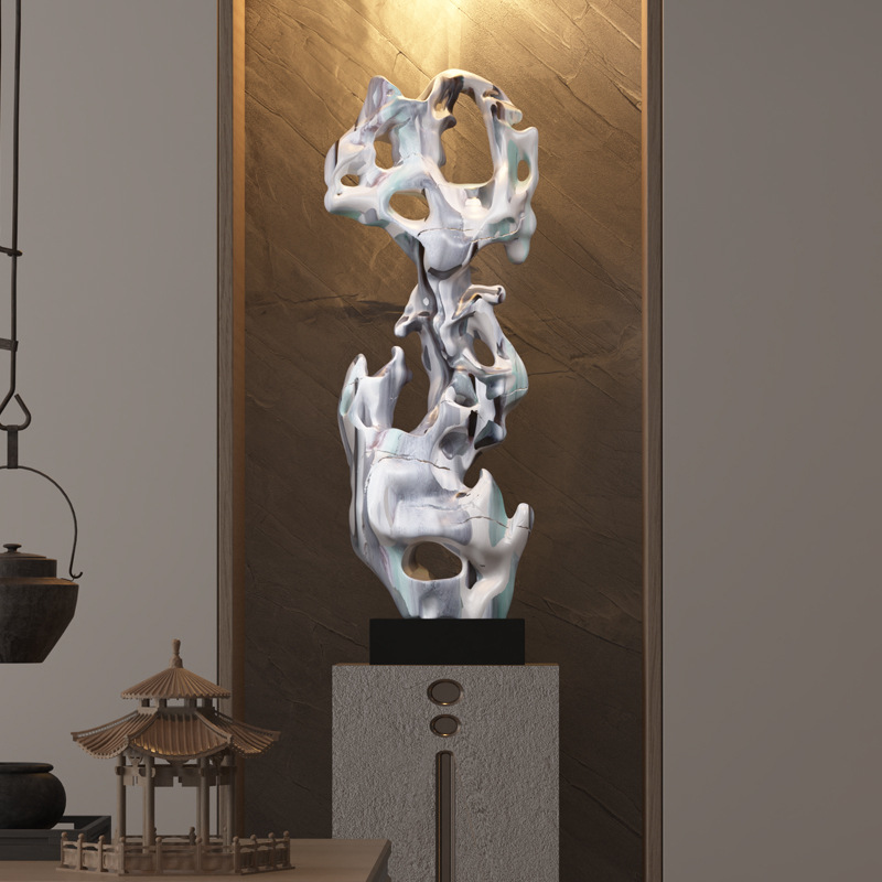 可定制现代轻奢雕塑太湖石落地摆件酒店会所售楼处样板间软装摆设